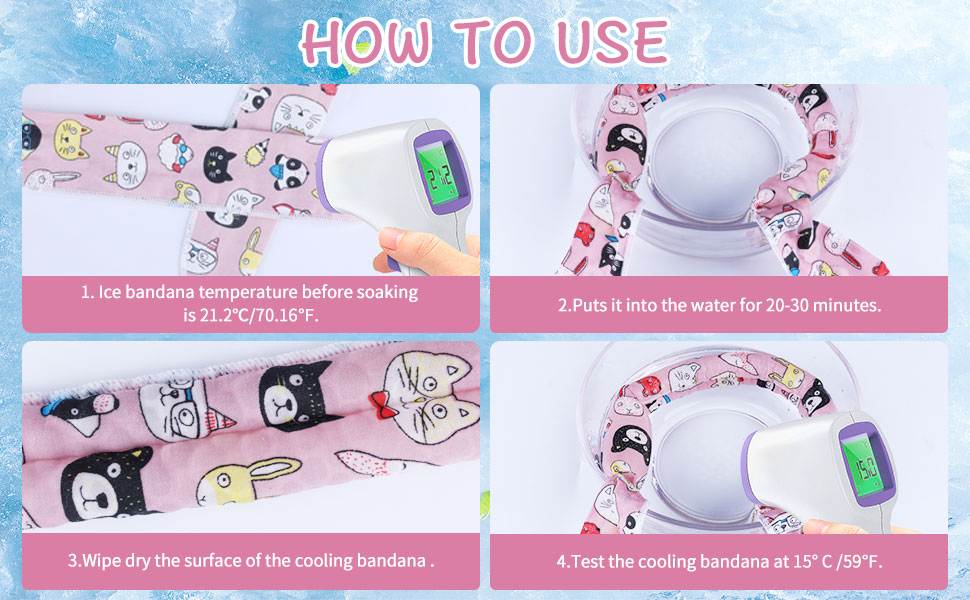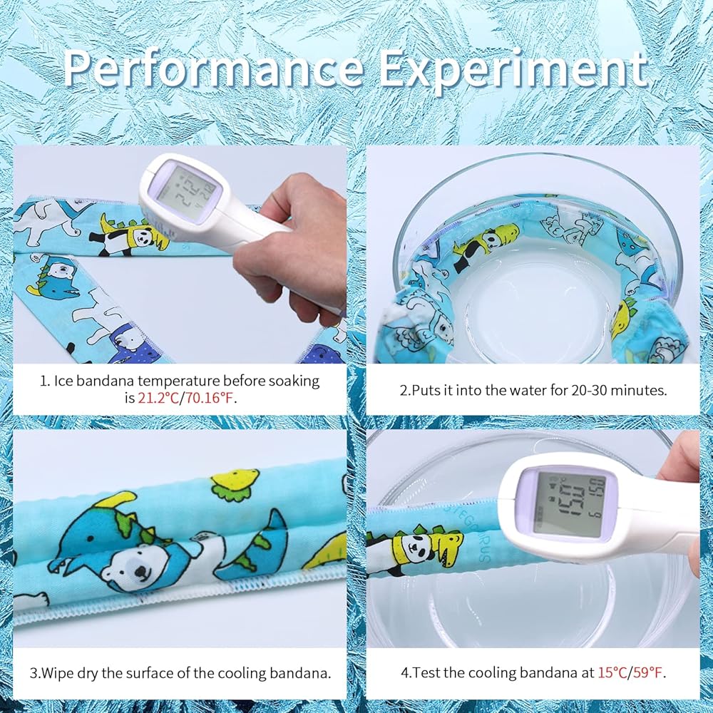 ❄️ملاحظة هامة - يرجى عدم رمي هذه المنديل الممتصة للماء في الماء لأكثر من ساعة واحدة. يمكن أن يمتص الكثير من الماء وينفجر عند اللحامات. سوف يعود باندابا التبريد إلى حالته الطبيعية في بيئة حارة.