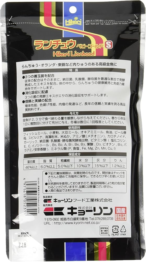 New combination of Bacillus natto · lactic acid bacteria · yeast extract. World brand "Hikari". KYORIN is a pioneer company for Food for aquarium fish. "Hikari" products are deployed in 40 countries from Japan. Hikari brand has gained high evaluation and solid achievement not only from Japan but also from enthusiasts of the world. KYORIN aims to become the world's leading ornamental fish feed maker. KYORIN wants to make not only foods that are convenient for people but also foods that fish is pleased with. KAMIHATA Fish Industry Group, Japan's largest aquarium fish wholesaler, KYORIN Food Industry, a factory specializing in making ornamental fish feeds. Knowledge acquired daily from fish experts at KAMIHATA which imports more than 6000 kinds of fish per year. Knowledge of the ecology and eating habits of tropical fishes of various countries in the world obtained by investigating the local fish as KAMIHATA expedition team. Based on these knowledge, the Yamazaki Laboratory has designed and tested recipes many times, and has completed a number of recipes. Based on those completed recipes, the manufacturing company KYORIN food industry manufactures foods with commitment. KYORIN wants to continue making foods that will serve fish with new functions. In order to provide the most suitable food for various fish around the world, KYORIN manufactures foods in various shapes such as grain, granules and flakes with high technology. In order to deliver a more reliable "Hikari" brand, quality control is carried out from the purchase of raw materials to the manufacturing process in a perfect system.