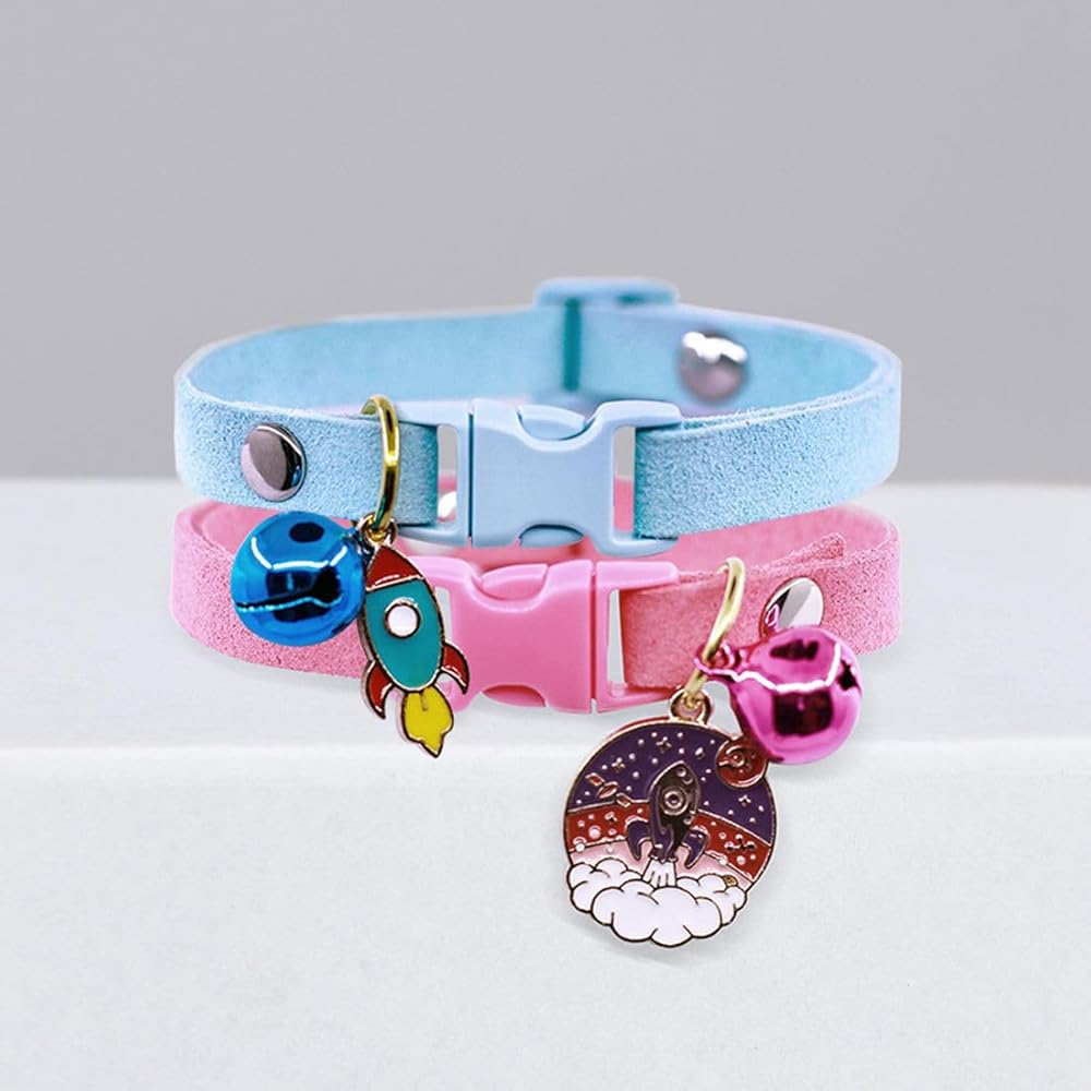 طوق جرو مع جرس، أطواق قطط جميلة مع أجراس لـ XXS Xs، الكلاب الأليفة الصغيرة والأولاد والقطط والبنات، وردي XXSmall
