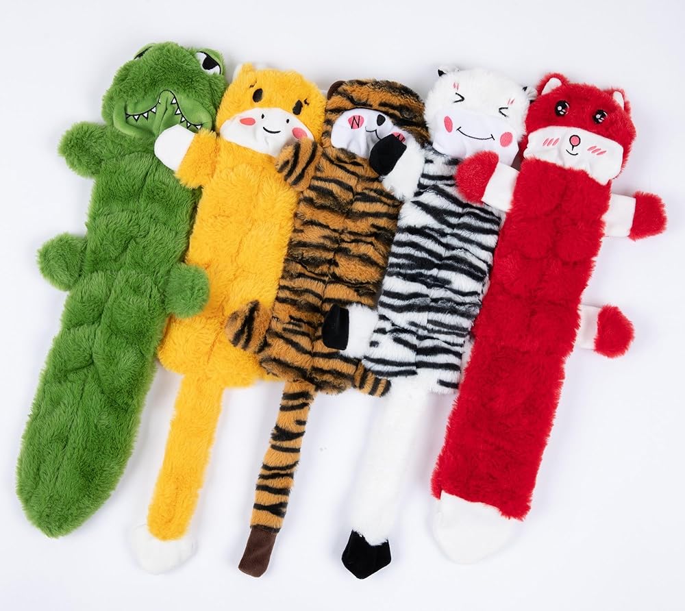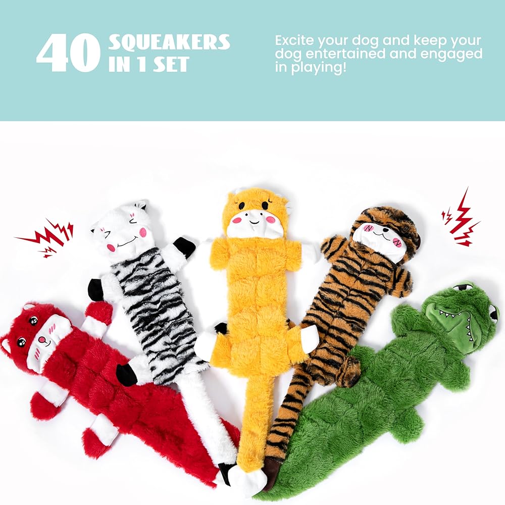 • - 🎃 تصميم بدون حشو للجسم: مثالي للمضغين العدوانيين، المجموعة المكونة من 5 قطع لا تحتوي على حشو في الجسم، مما يجعلها أكثر أمانًا وملاءمة للعب القوي. يبلغ طول هذه الألعاب 53.34 سم، وهي ذات حجم مناسب لمختلف زملاء اللعب من الكلاب، من السلالات الصغيرة إلى الكبيرة.