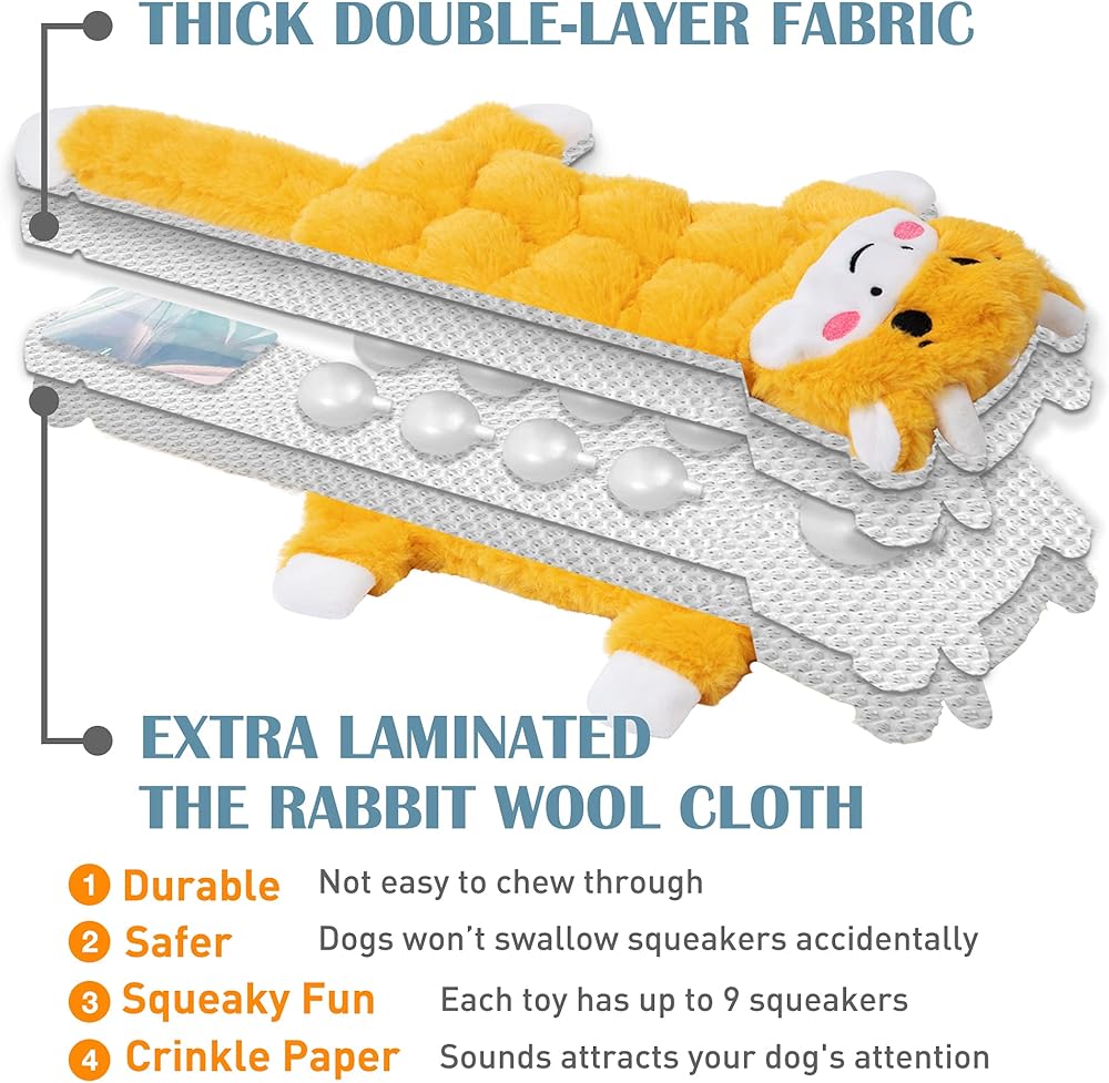 • - 📸 ألعاب تفاعلية منتجة للصوت: كل لعبة كبيرة مجهزة بمولد صوت عالي الجودة في الجسم وورق مجعد في الذيل، مما ينتج أصواتًا تحفز غرائز الصيد لدى كلبك وتجعله يعود للمزيد.