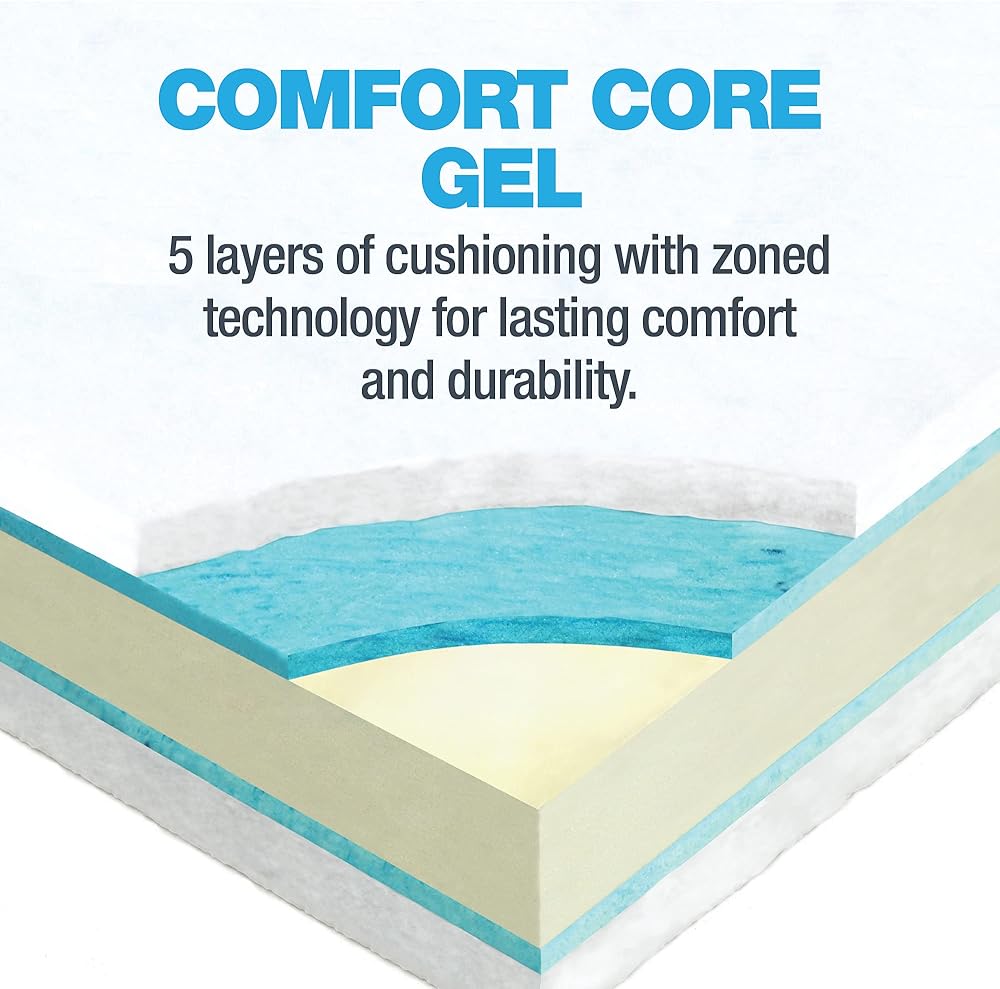 • COMFORTCORE GEL: The ComfortCore GEL premium base, with five layers of cushion with Comfort Select fiber fill, adds neck, pressure point, back & joint support.