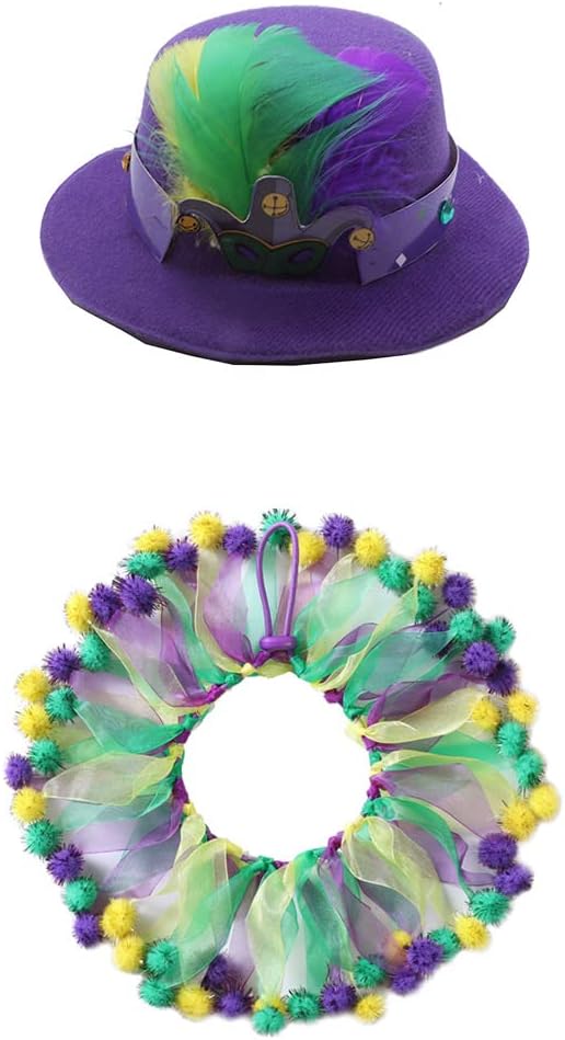 Mardi Gras Puppy Collar Bandana Headband Pets Costume for Mardi Gras Party