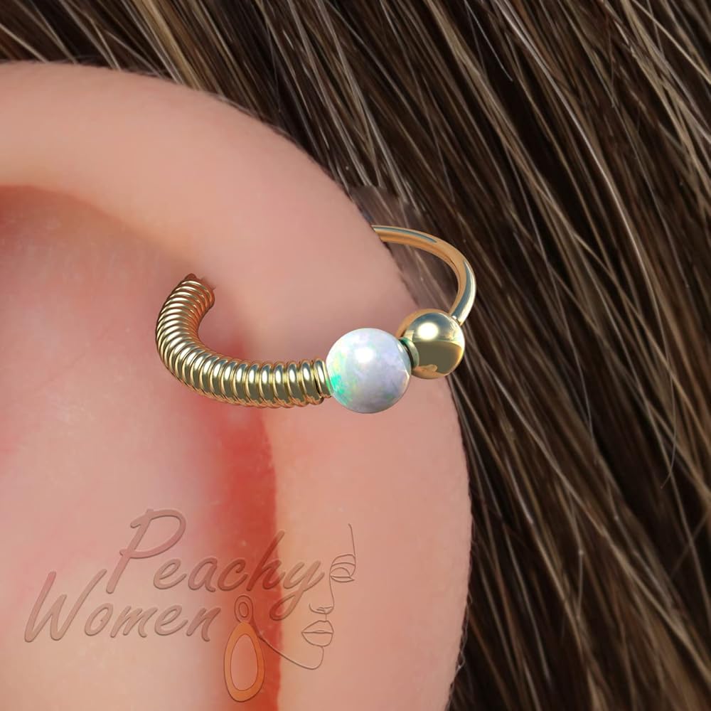 الغضروف حلَق أذن للنساء العقيق الأبيض 20 مقياس اللولب الدائري 14k الذهب معبأ الأذن حلق ثاقب القرط القبلية اليدوية هوب