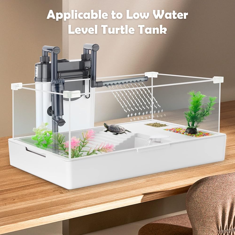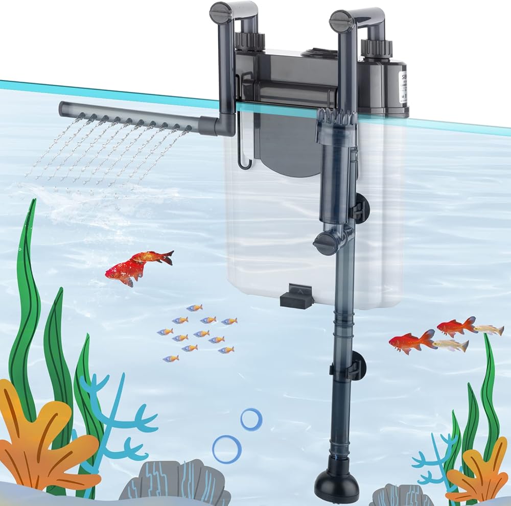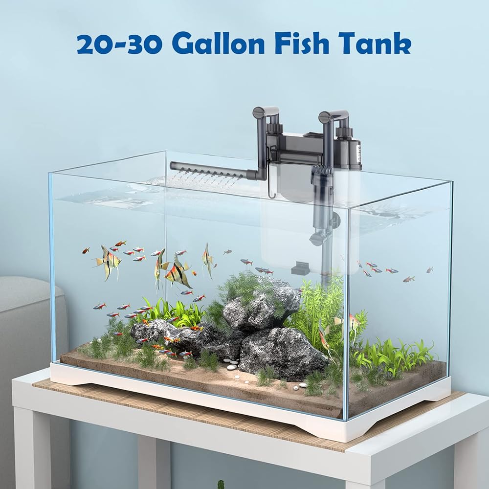 small external hanging aquarium filter runs at 85GPH (300L/H), wattage is 5w. It is fixed for 20-30 gallons freshwater fish tanks, turtle tank and aquariums.