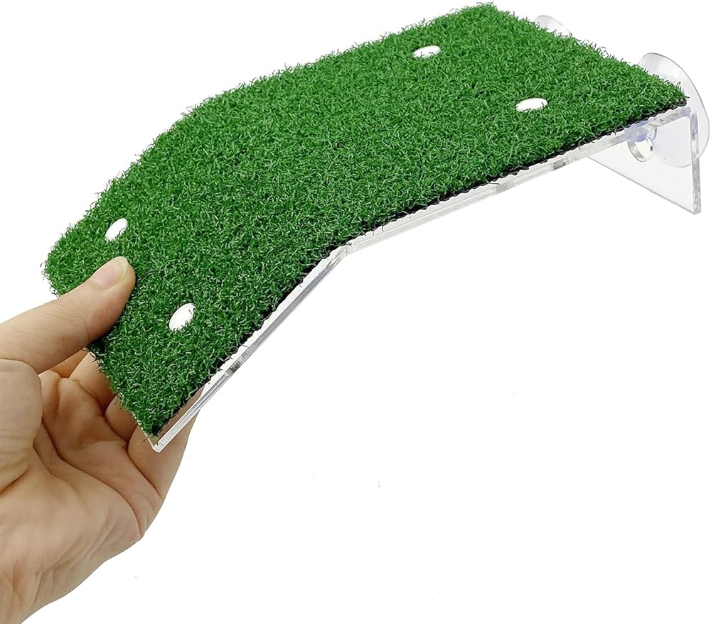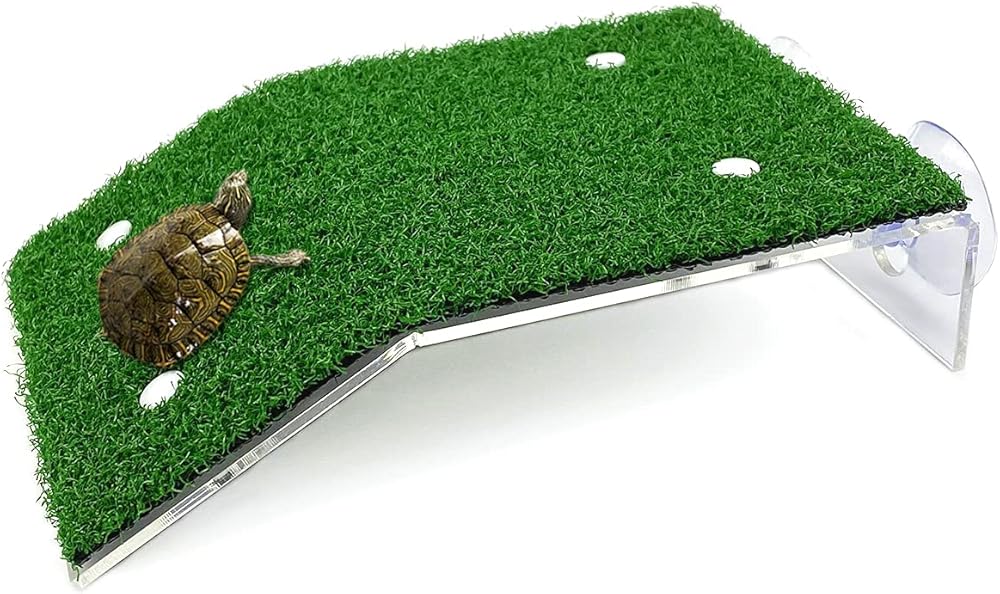 • With artificial green turf, which is soft and non-slip, making the pet easy to climb, giving the turtle a pristine and comfortable habitat environment.
