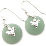 Fall in love with these gorgeous recycled sea glass charm earrings. Handmade with super cute sterling silver bee charms dangling from each earring. Hooks are Sterling Silver. These earrings are sure to invite lots of admiration and fun. Enjoy! Please remember not to wear your jewelry in the pool or hot tub as harsh chemicals may cause damage.