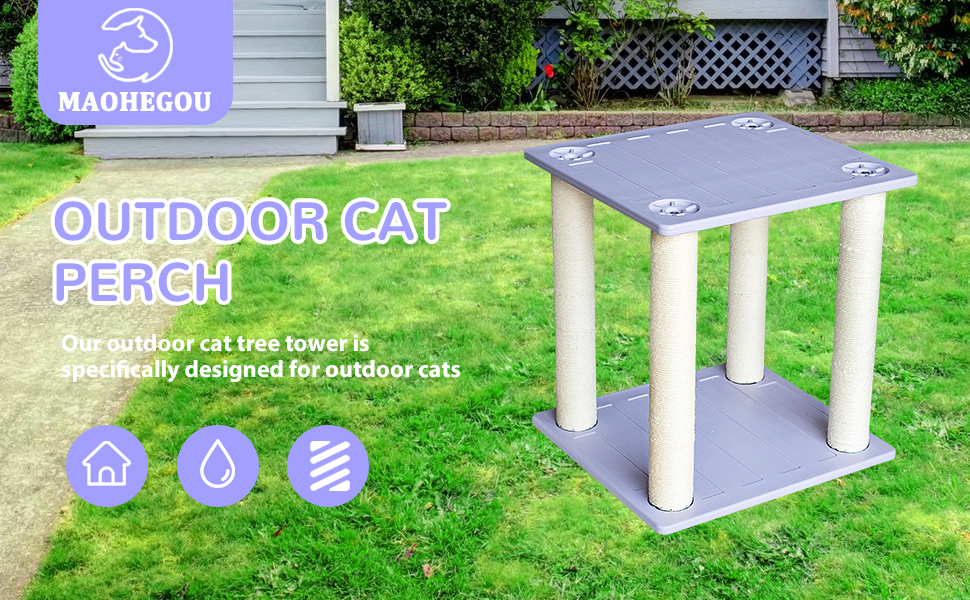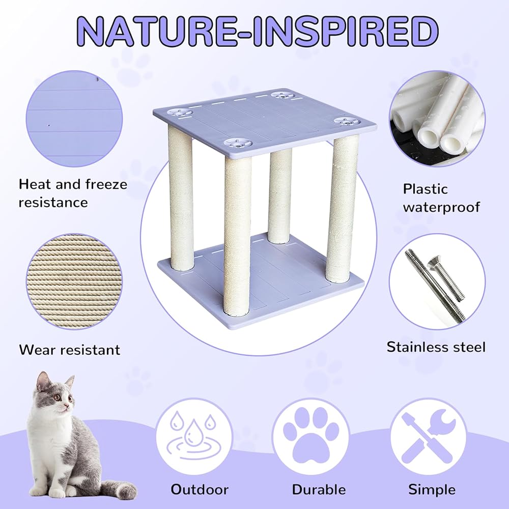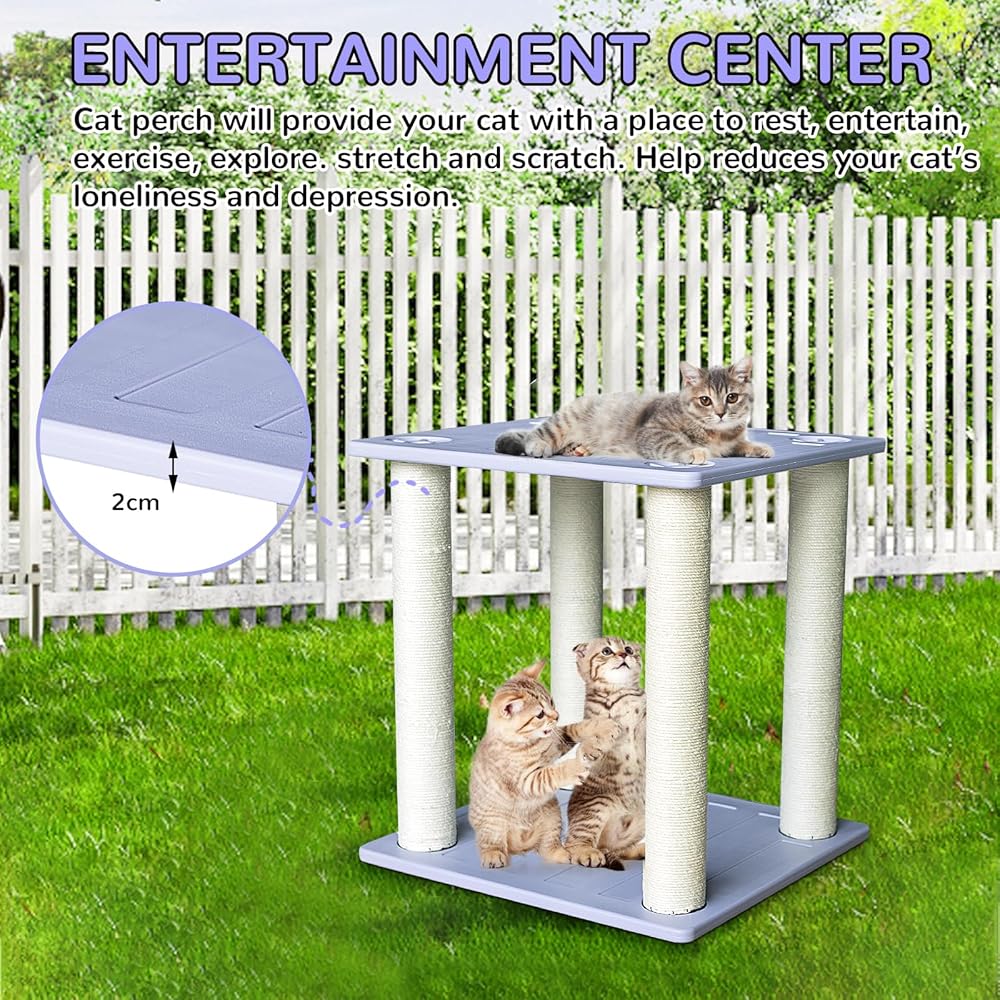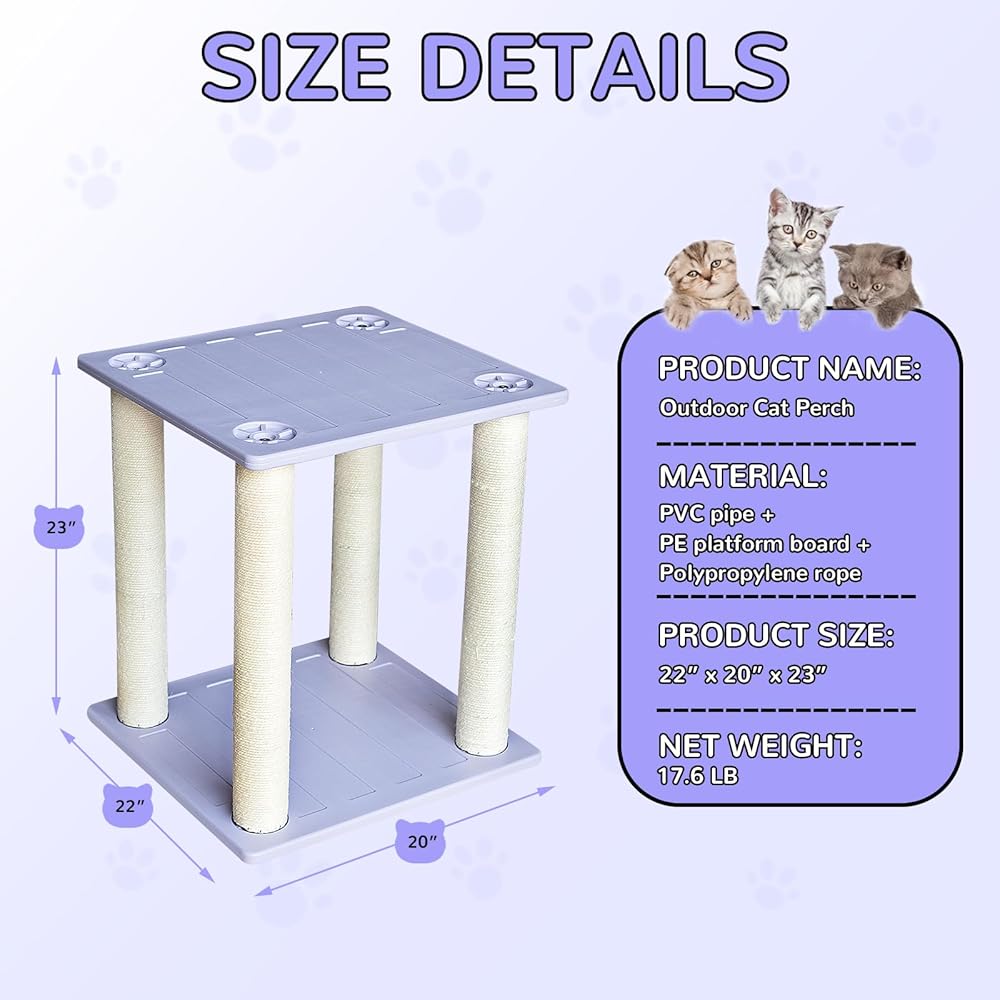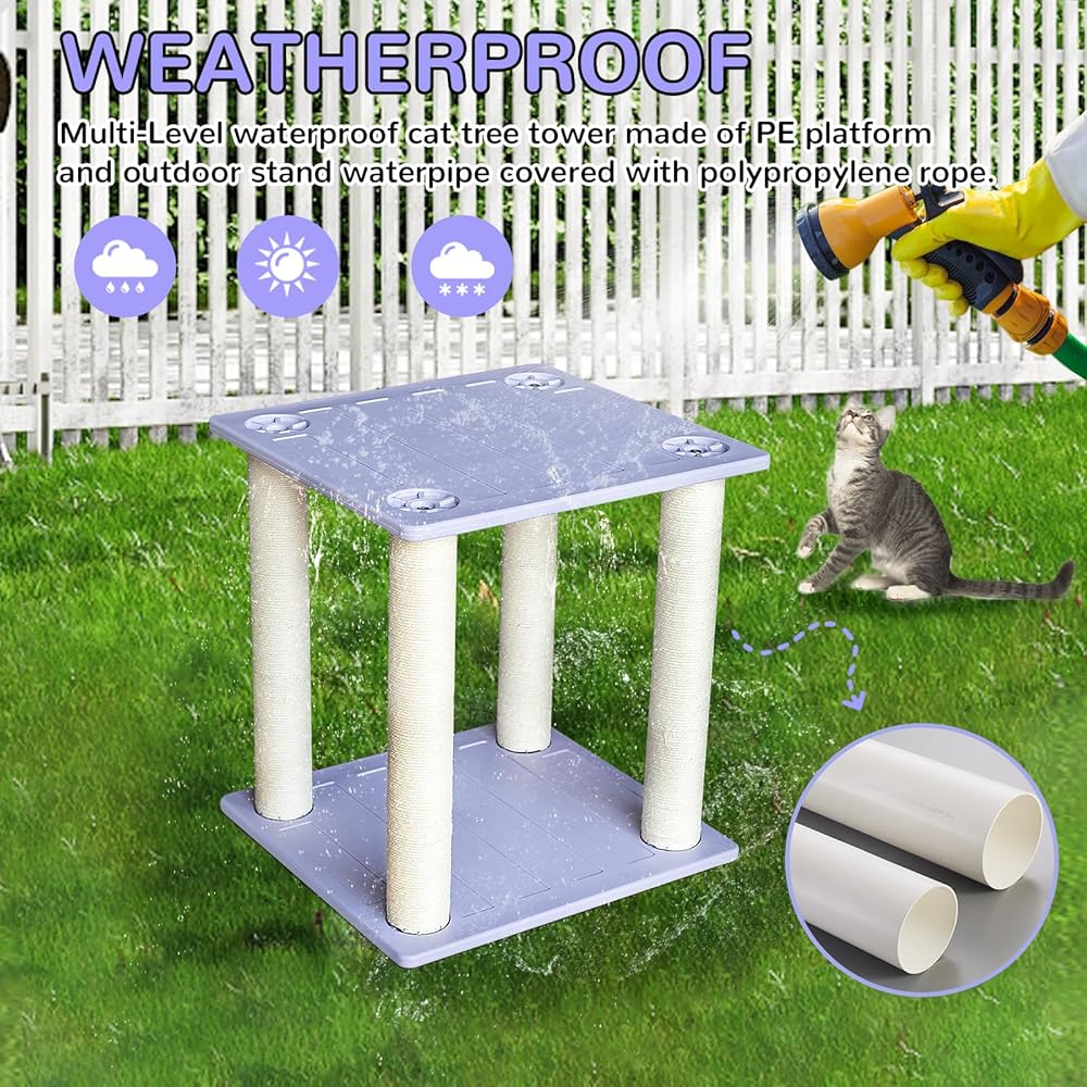 مقاوم للطقس - برج شجرة القطط مقاوم للماء متعدد المستويات مصنوع من منصة PE وأنبوب ماء حامل خارجي مغطى بحبل من البولي بروبيلين، إجمالي منصتين كل منهما 22 بوصة × 20 بوصة، كبيرة جدًا وواسعة لوقت لعب القطط والخدش والغفوة، صديقة للقطط المتعددة.