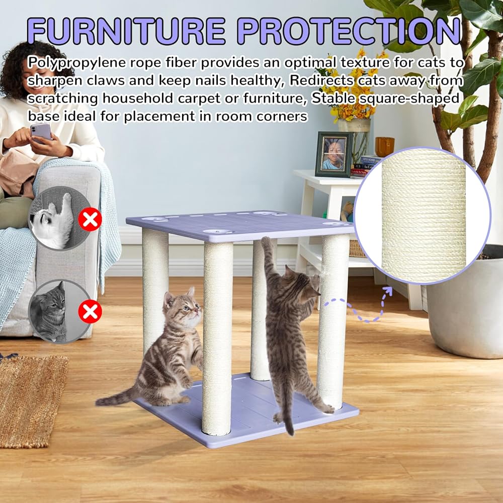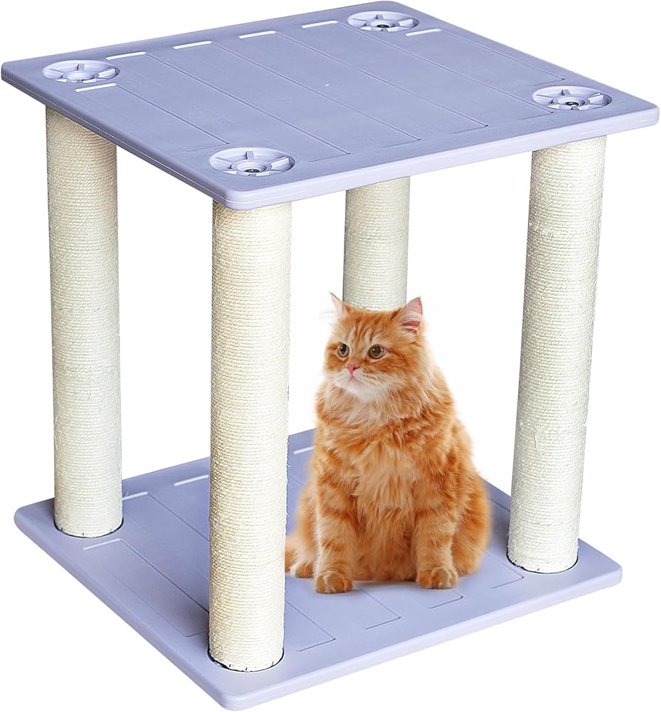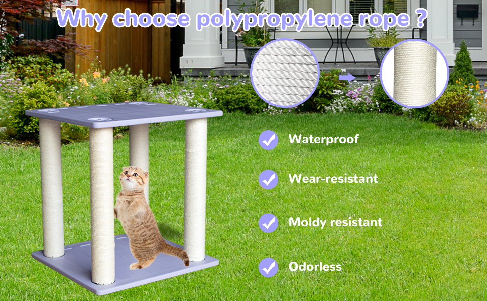 حماية الأثاث - توفر ألياف حبل البولي بروبيلين ملمسًا مثاليًا للقطط لشحذ المخالب والحفاظ على صحة الأظافر، وتعيد توجيه القطط بعيدًا عن خدش السجاد المنزلي أو الأثاث، كما تعمل المجثم الكبير على إشراك القطط الداخلية والخارجية في التسلق والخدش ووقت القيلولة المريح، بالقرب جدًا من الأشجار. وهي القطط التي تطحن مخالبها في الطبيعة