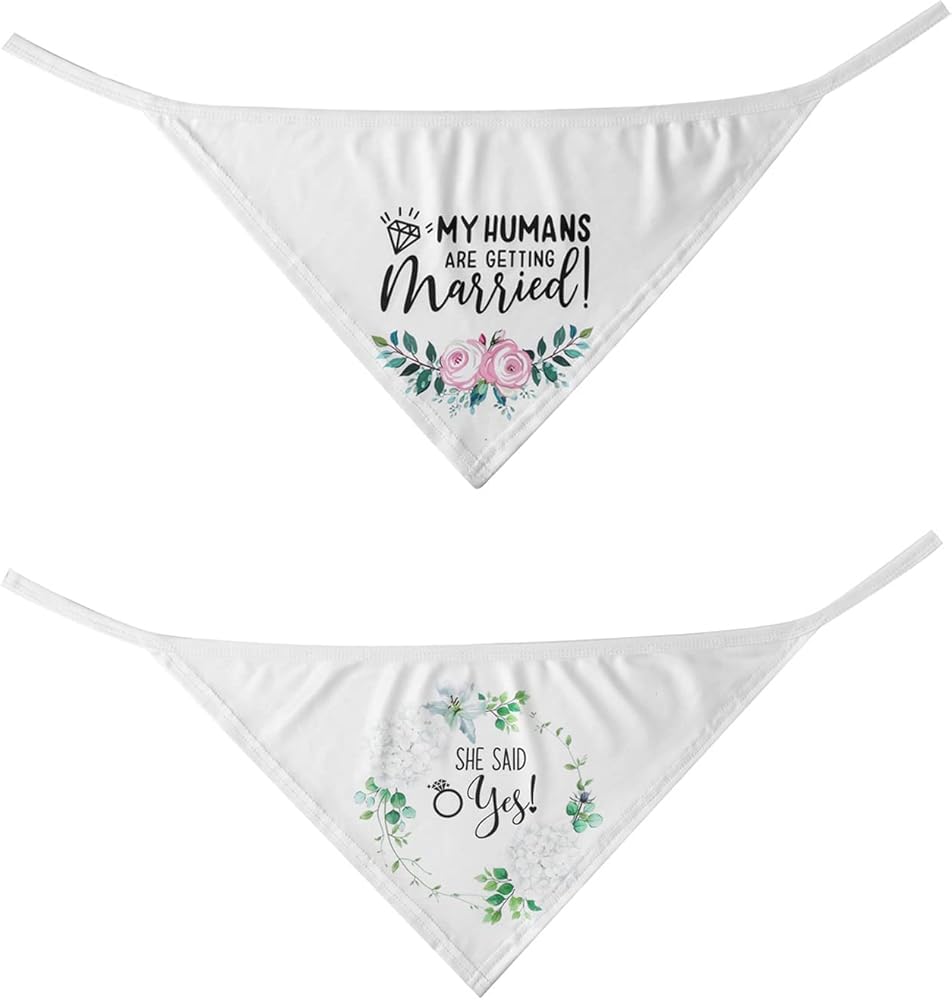 Set of 2 Engagement Dog Bandanas with printed words My humans are getting married! and She said yes!