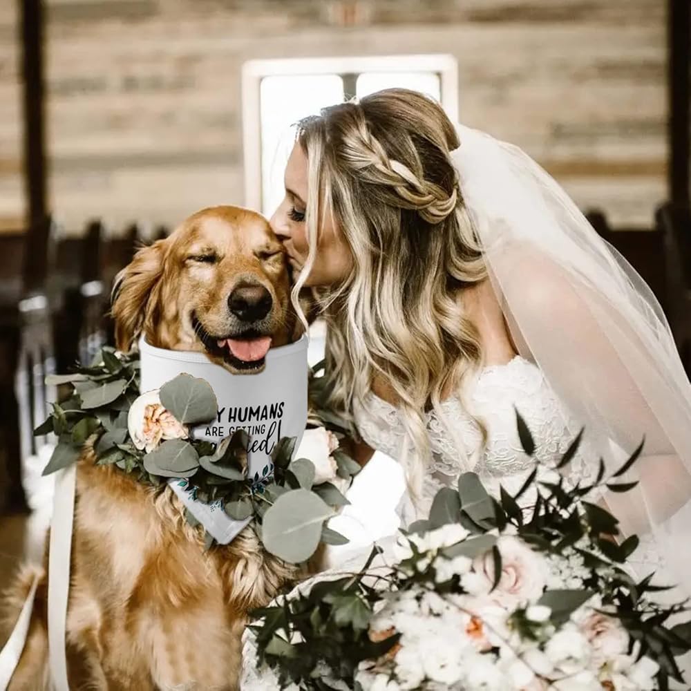 • 【For Big Days! 】 The best new couple gifts for dog lover /dog owner, is Engaging or Wedding Photo Props for pups too. Holy white background add much romantic atmosphere,meaningful words and patterns let your pets more attractive and elegant, is suitable for both boy or girl dog outstanding on celebrations.