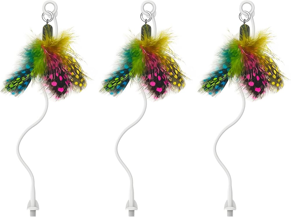 3 Refills for Ongoing Fun: Package includes 3 feather replacements for interchangeable use Durable Material: Crafted from high-quality, cat-friendly materials, ensuring long-lasting fun. Easy Installation: Screw-on design allows for a quick and hassle-free replacement.