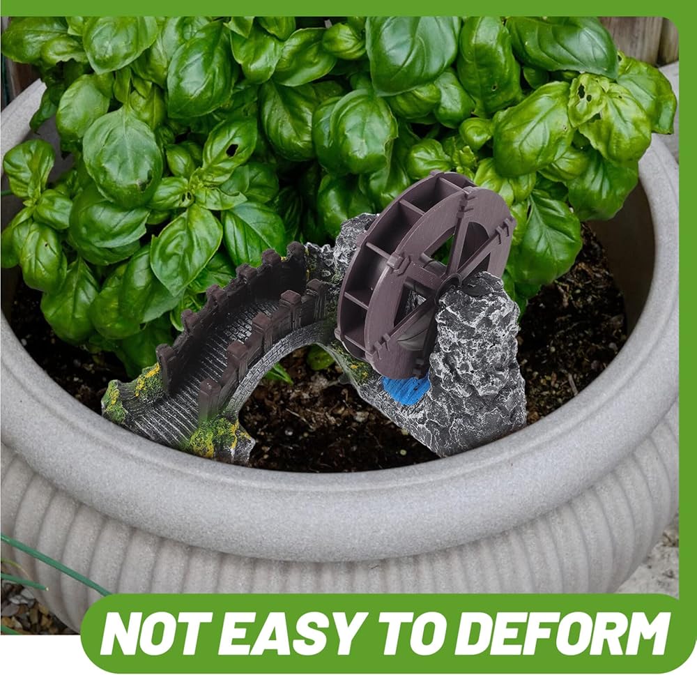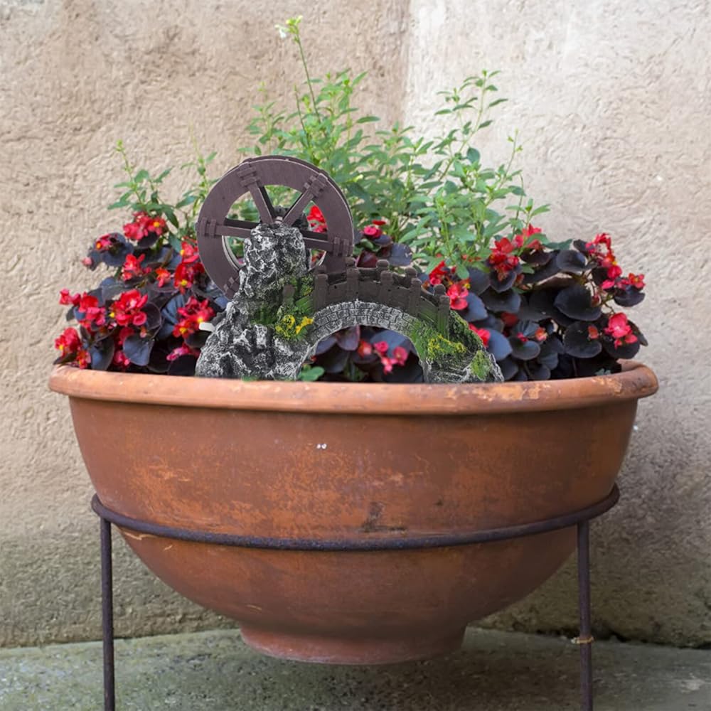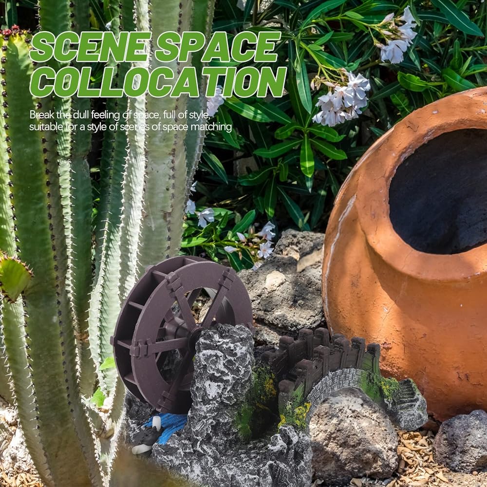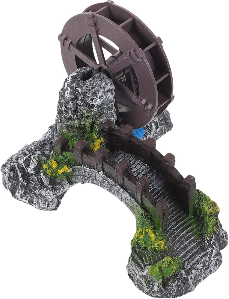 تمثال ياردوي المصغر لعجلة المياه من الراتنج نموذج جسر بونساي لحوض السمك منظر طبيعي صغير لتزيين حوض الأسماك (رمادي)