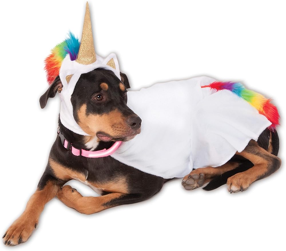 - Easy-to-wear cape costume has a hood with attached unicorn horn and colorful mane and tail
