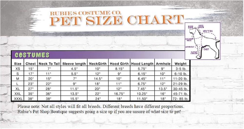 Consult Rubie's Pet Size Chart and recent reviews before making selection