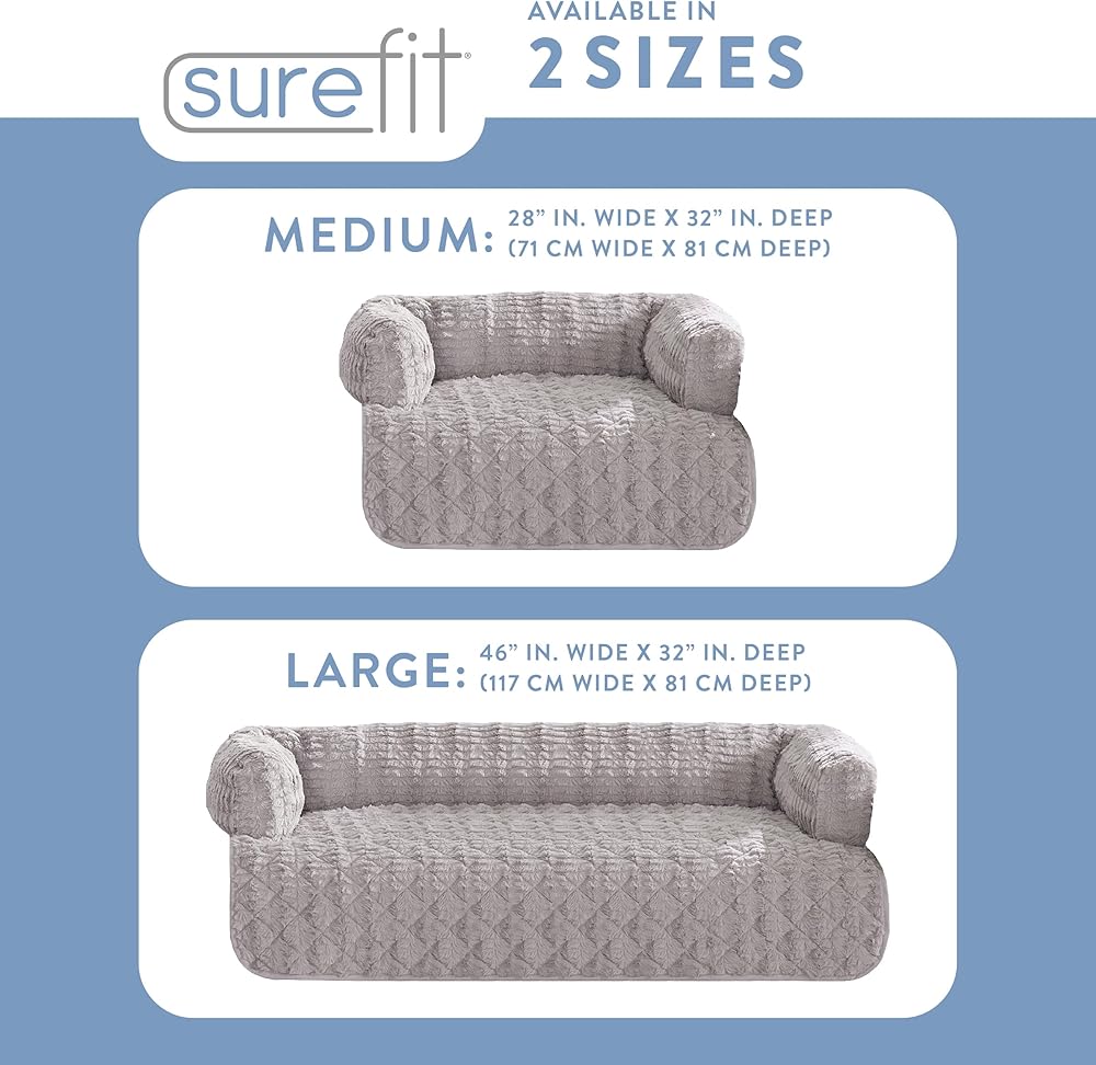 سرير SureFit Pet ذو 3 جوانب للكلاب والقطط للأريكة، نسيج فرو صناعي ناعم، يمكن غسله في الغسالة وغير قابل للانزلاق، واقي للأريكة والتحكم في الرائحة، كبير، 46 × 32 بوصة، رمادي فاتح