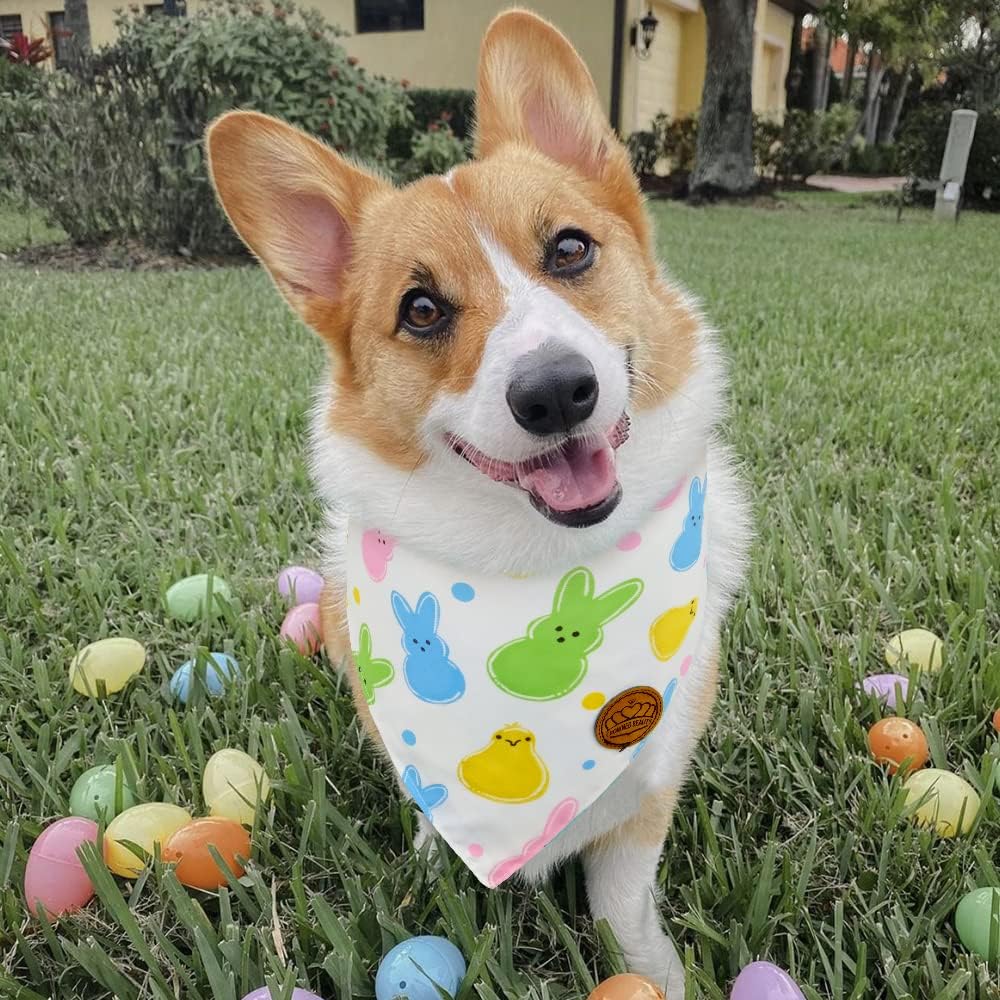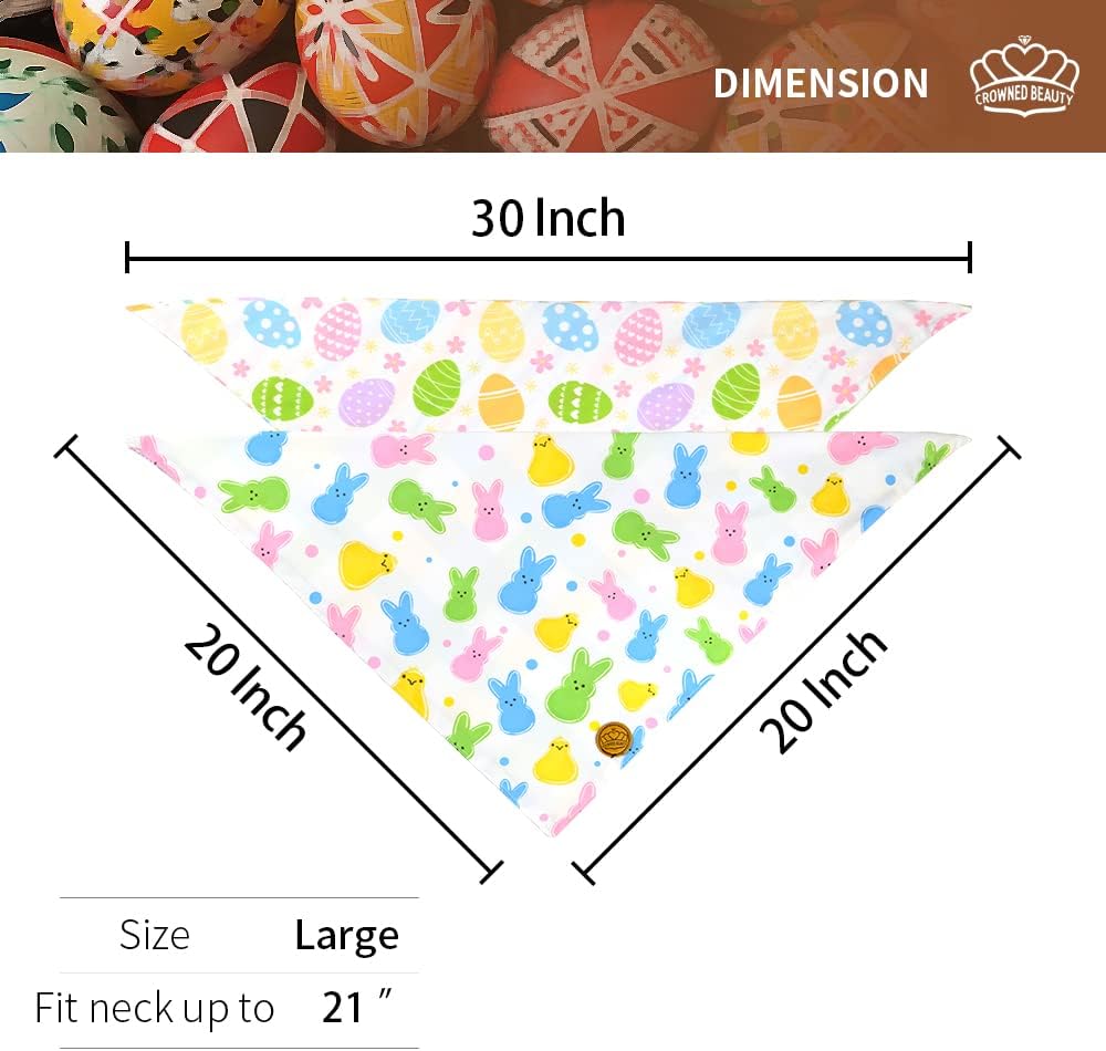 تاج الجمال عيد الفصح الكلب عصابات كبيرة 2 حزمة، مجموعة بيض الأرانب الملونة، شريط الأزهار قابل للتعديل مثلث عطلة منقوشة الأوشحة عكسها لمتوسط كبير جدا الكلاب الحيوانات الأليفة