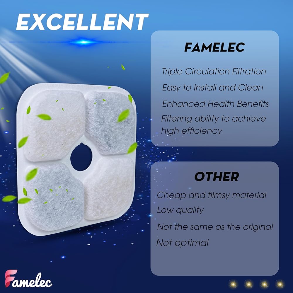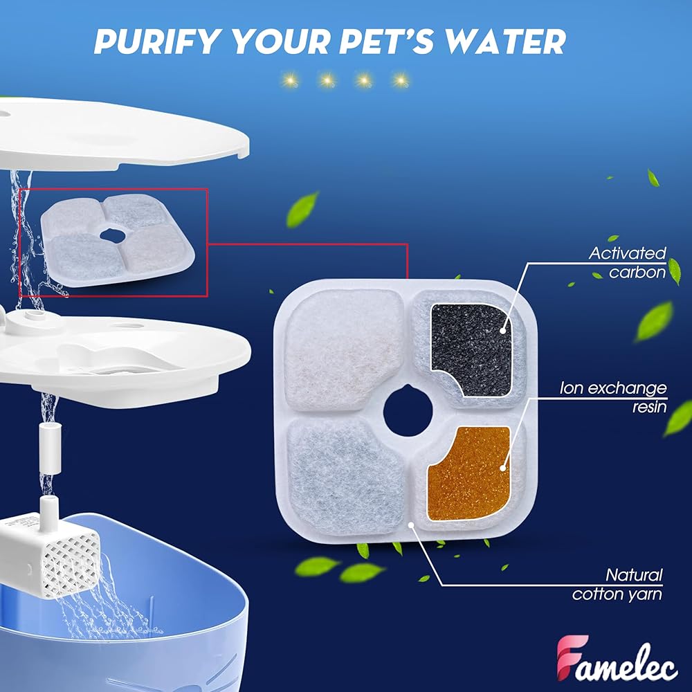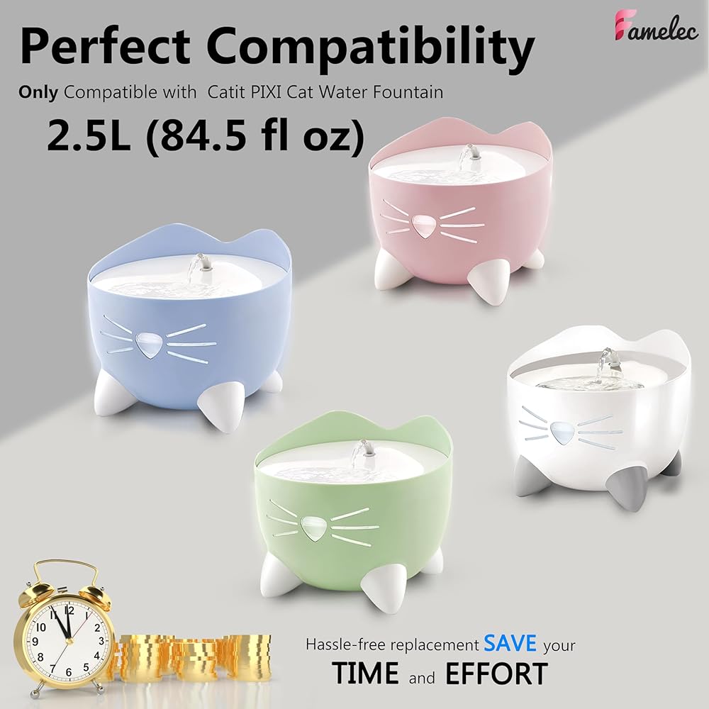 💦 قم بتنقية مياه حيوانك الأليف باستخدام مرشحات نافورة مياه بيكسي كات: من خلال تزويد قطتك بالمياه النظيفة والعذبة، يمكنك زيادة استهلاكها للمياه وتقليل خطر الإصابة بالتهابات المسالك البولية. حافظ على صحة قطتك وترطيبها باستخدام مرشحات نافورة مياه الحيوانات الأليفة من FAMELEC. تأكد من أن حيوانك الأليف يشرب فقط المياه النظيفة مع التصميم المبتكر لمرشحات نافورة كات بيكسي.