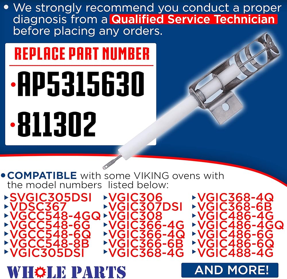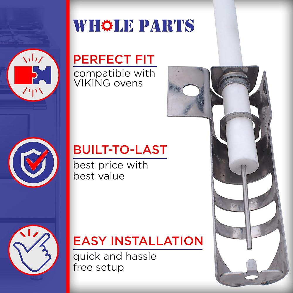 الجزء الكامل من قطب الإشعال الكهربائي # PB040170 - بديل ومتوافق مع بعض أفران الفايكنج - يستبدل AP5315630، 811302 - قطع غيار وملحقات أجهزة الفايكنج غير المصنعة الأصلية - ضمان لمدة عامين