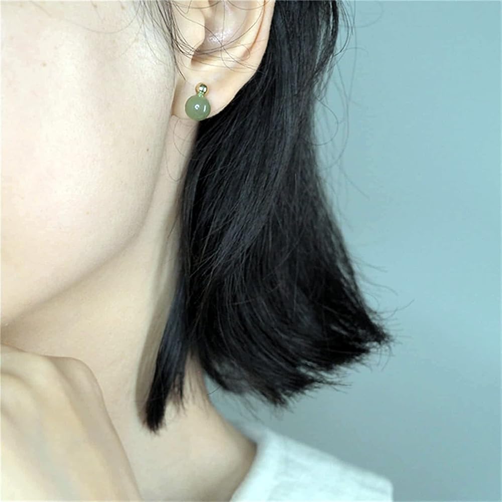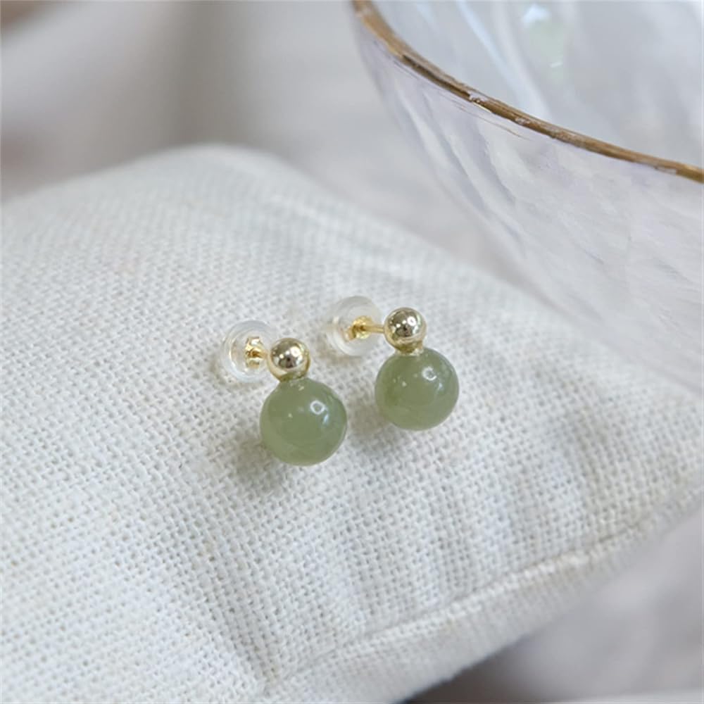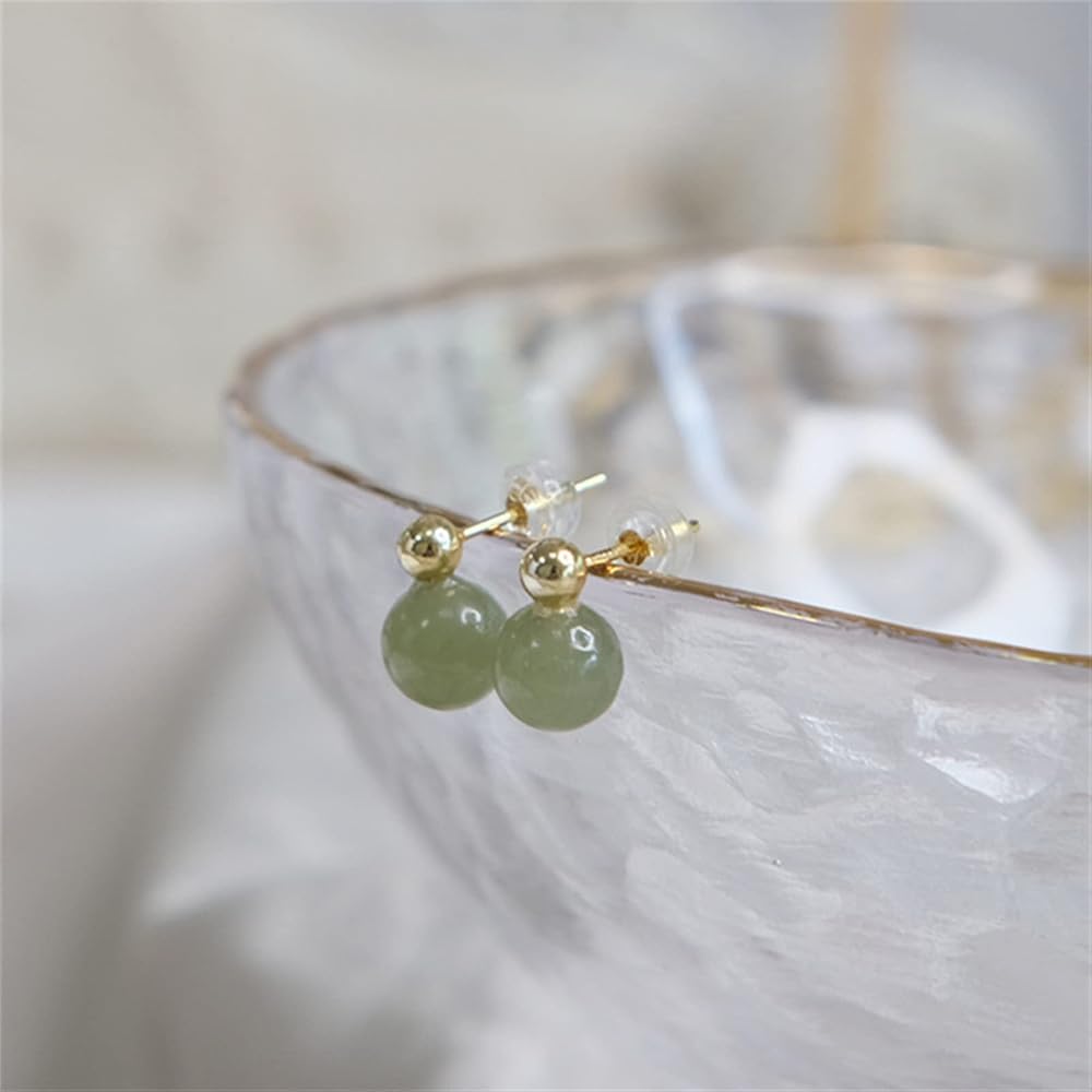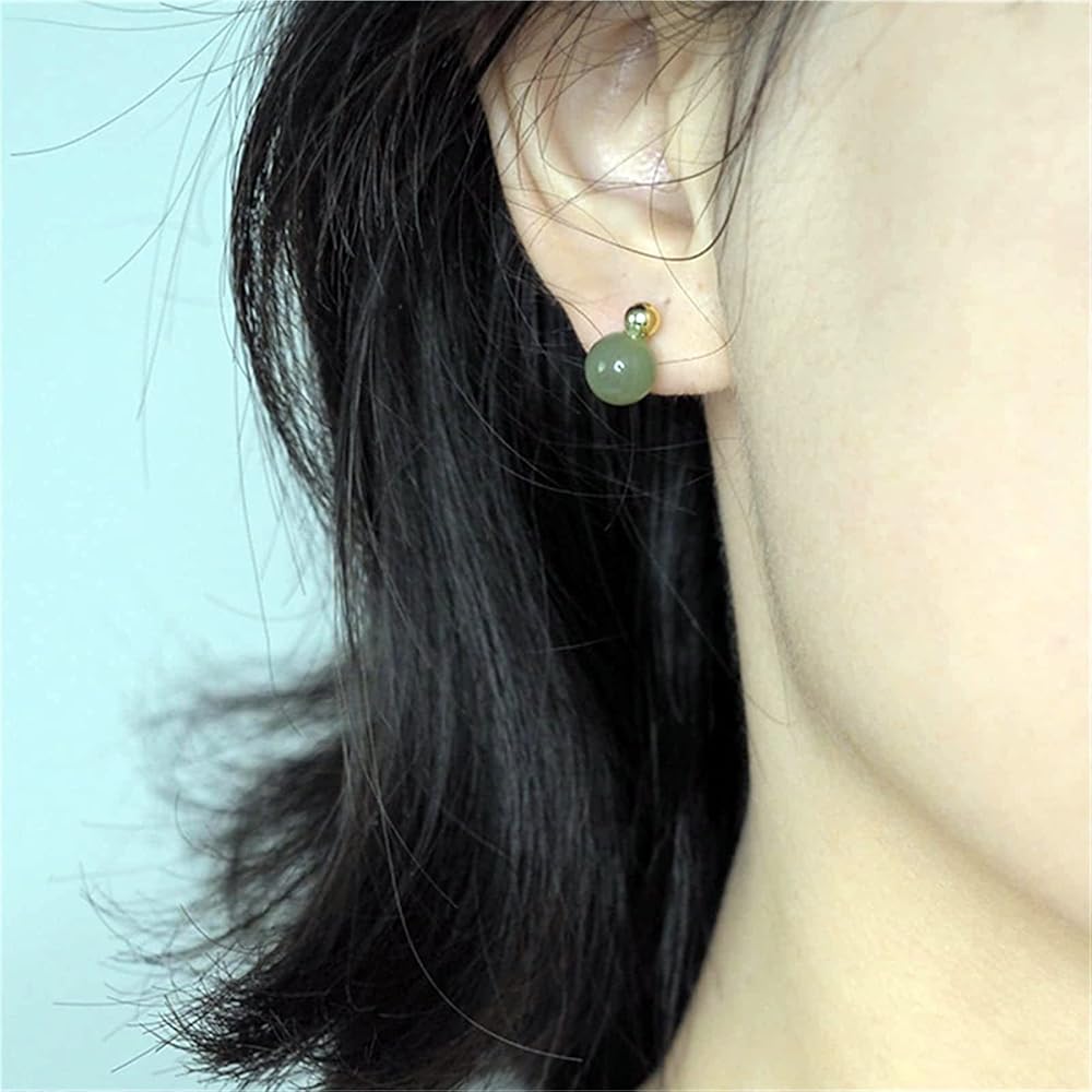 أقراط اليشم الهيتي الطبيعية للنساء، أقراط ذهبية رائعة من الخرز الذهبي واليشم الأخضر قلادة مجوهرات، أقراط أذن مصنوعة يدويًا لمحبي الأم (925 فضة استرليني مع مطلية بالذهب)