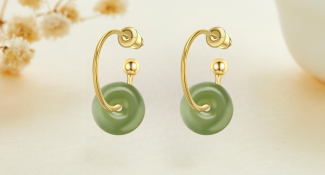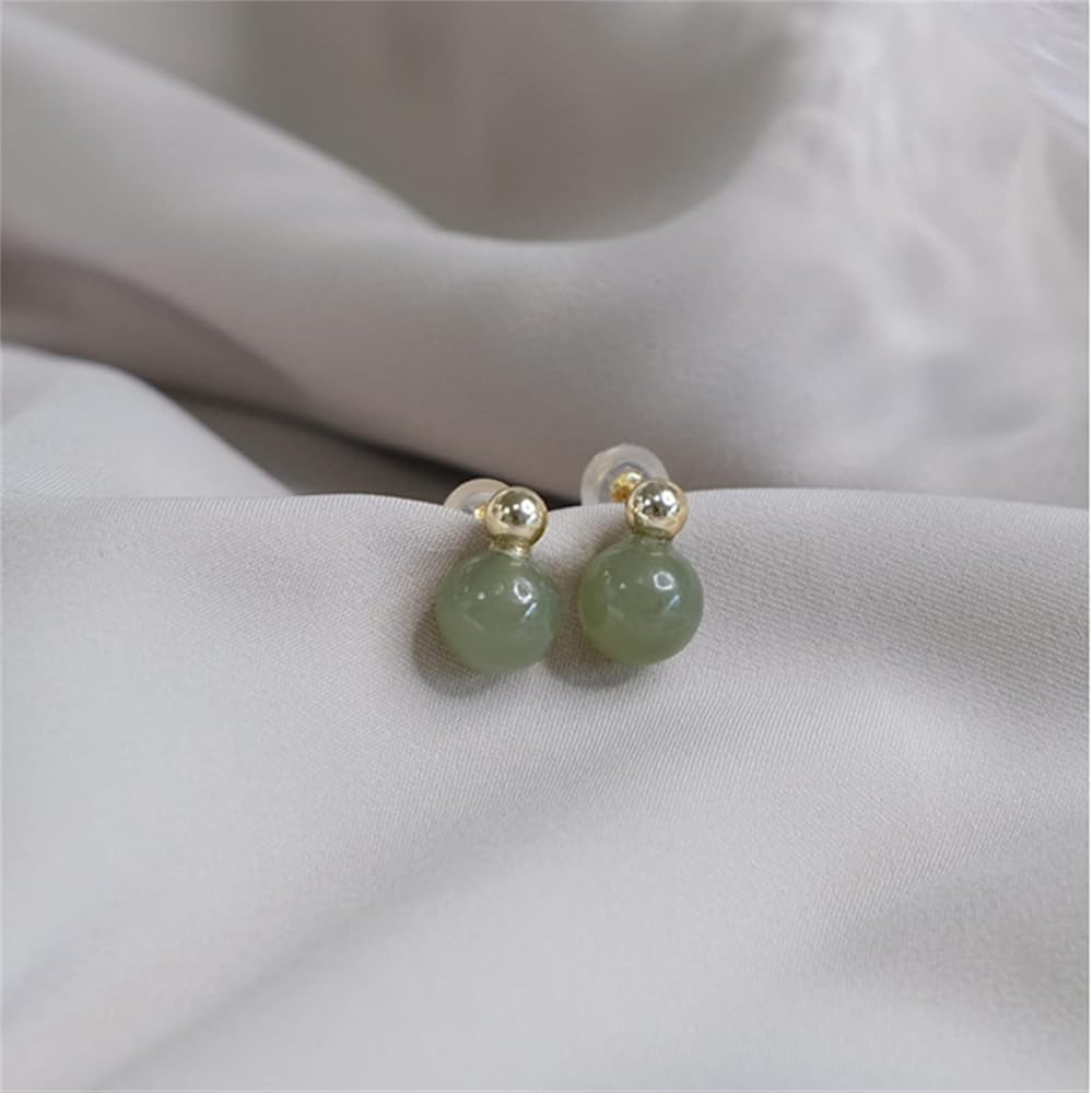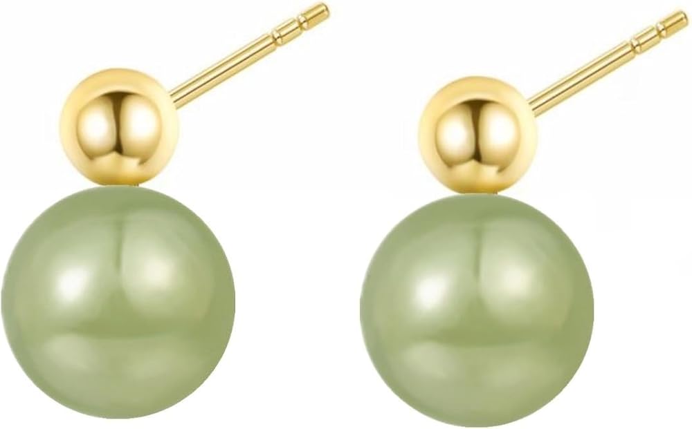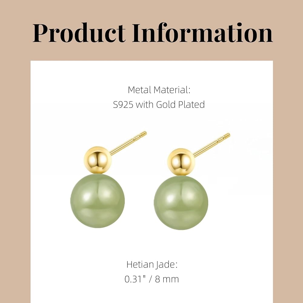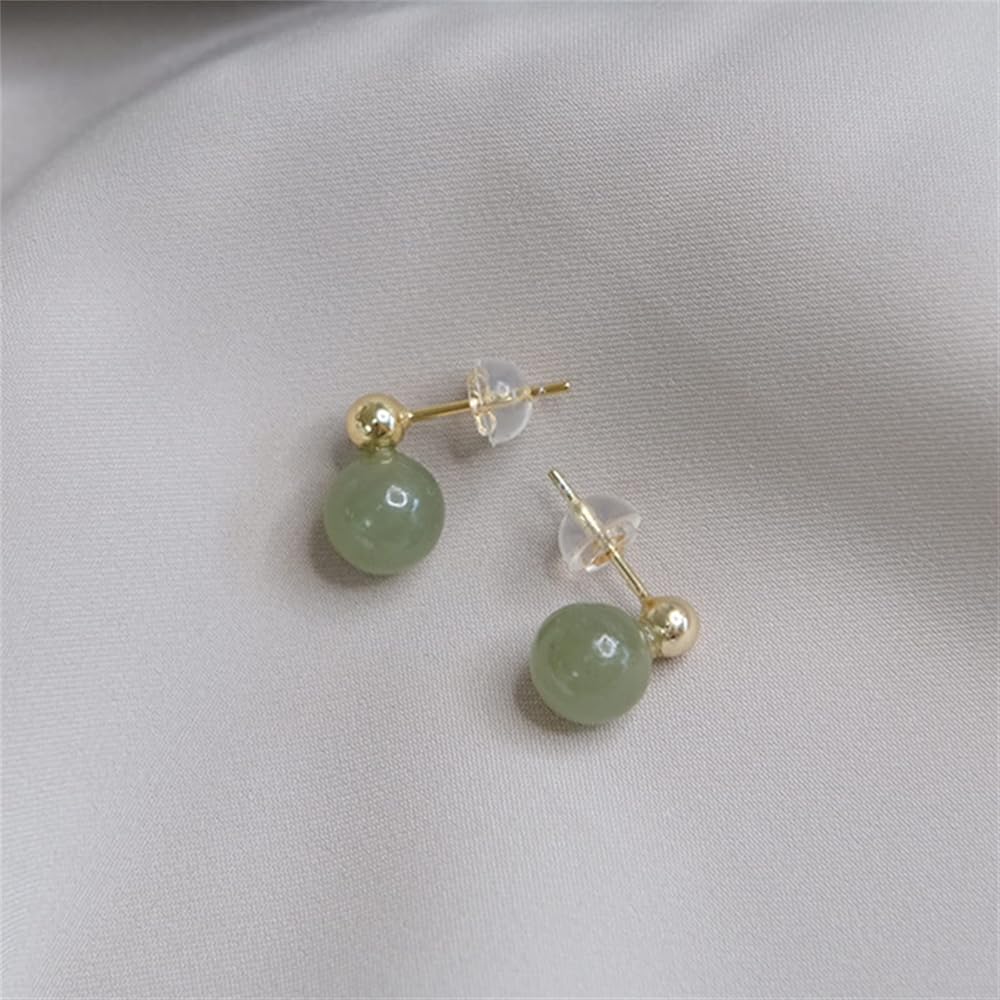 أقراط اليشم الهيتي الطبيعية للنساء، أقراط ذهبية رائعة من الخرز الذهبي واليشم الأخضر قلادة مجوهرات، أقراط أذن مصنوعة يدويًا لمحبي الأم (925 فضة استرليني مع مطلية بالذهب)