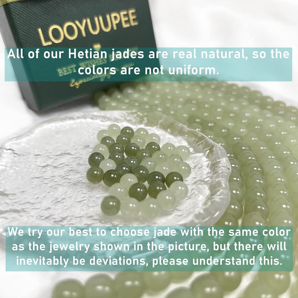 ☀️يشم طبيعي☀️يشم هيتيان هو يشم طبيعي، كل واحد له ملمس وألوان مختلفة، كل مجوهرات فريدة من نوعها. قد تحصل على قلادات بلون مختلف قليلاً عن اللون الموجود في الشكل. يمكن أن تكون خضراء داكنة أو خضراء فاتحة. يرجى فهم هذا.