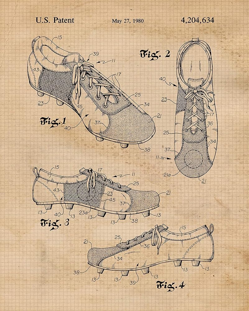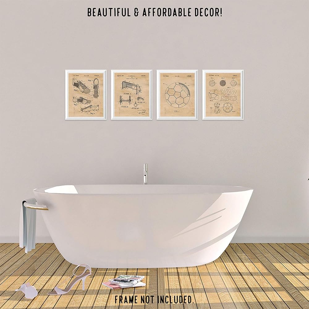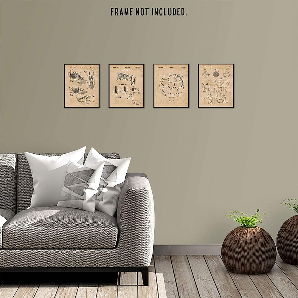 مطبوعات براءات اختراع لكرة القدم العتيقة، 4 (8 × 10) صور غير مؤطرة، هدايا ديكور فني للحائط للمنزل والمكتب والمتجر واللياقة البدنية وصالة الألعاب الرياضية والمدرسة والطلاب الجامعيين والمدرسين والمدربين العالميين لفريق كرة القدم ونادي الكأس الأبطال