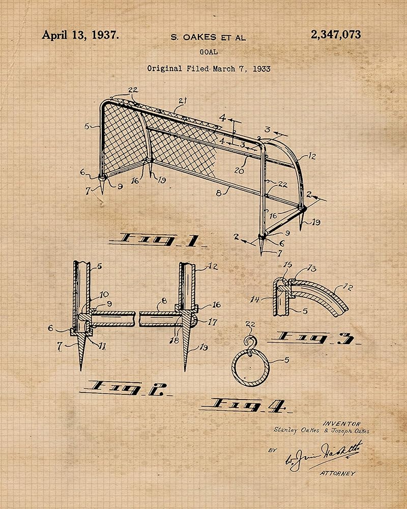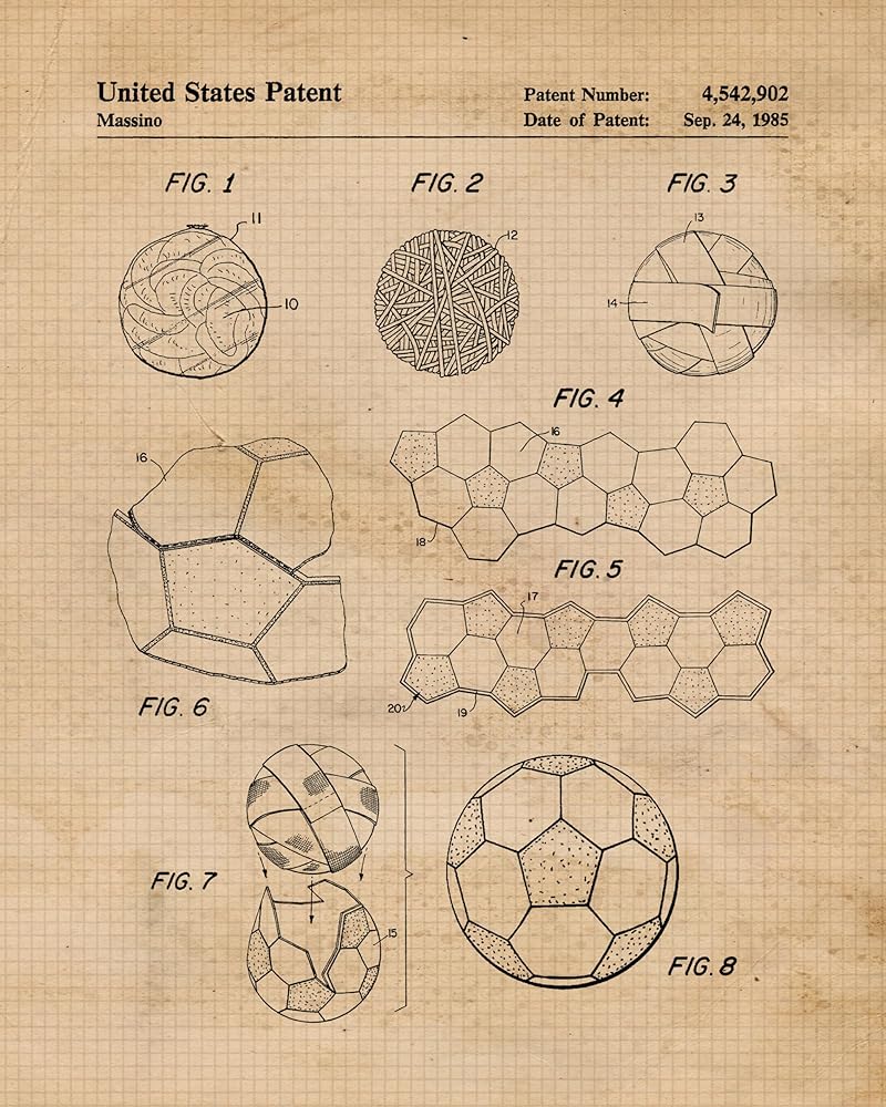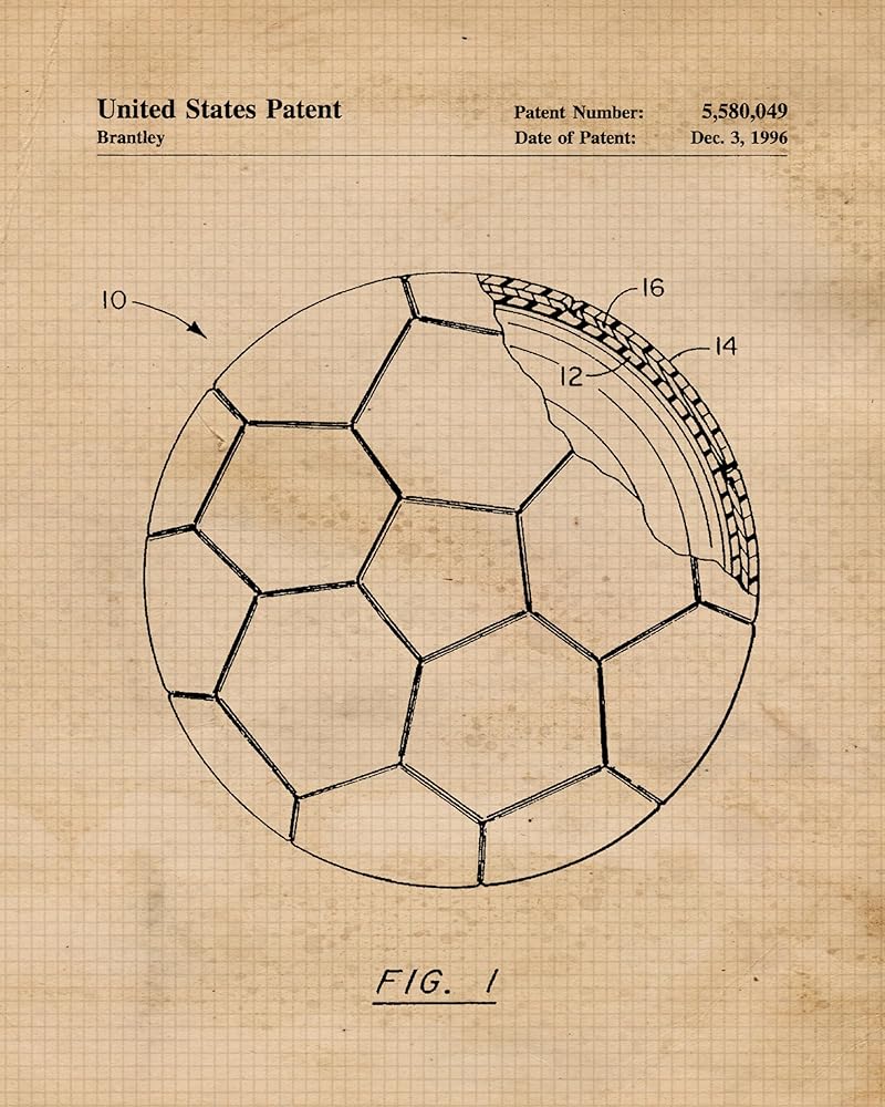 Stars by Nature wall art. Unframed vintage set of iconic soccer patents artwork (not on parchment paper, canvas, metal, or wood) reinterpreted to capture the spirit of innovation, engineering, and hand crafted to infuse the classic, vintage feel and personal touch by our award winning artist in North Carolina.
