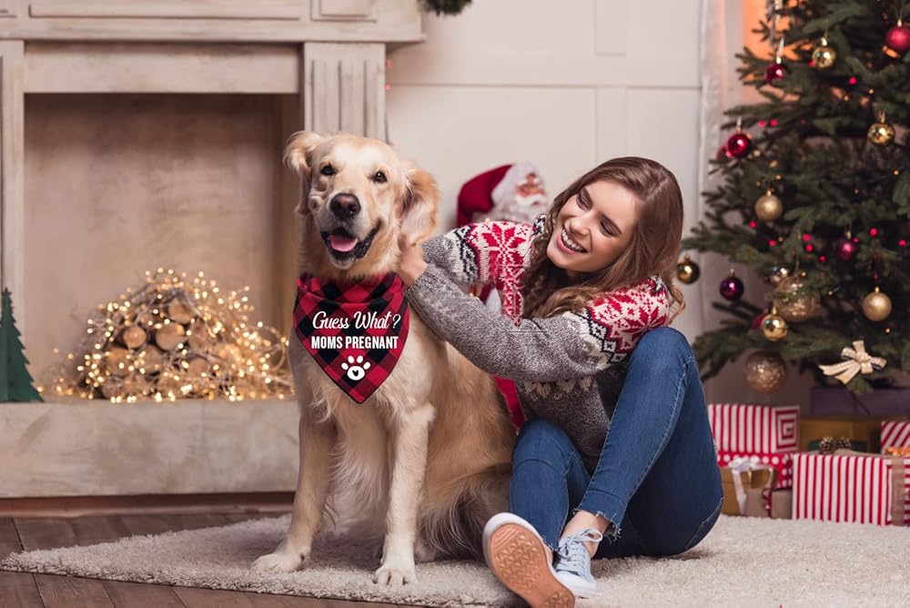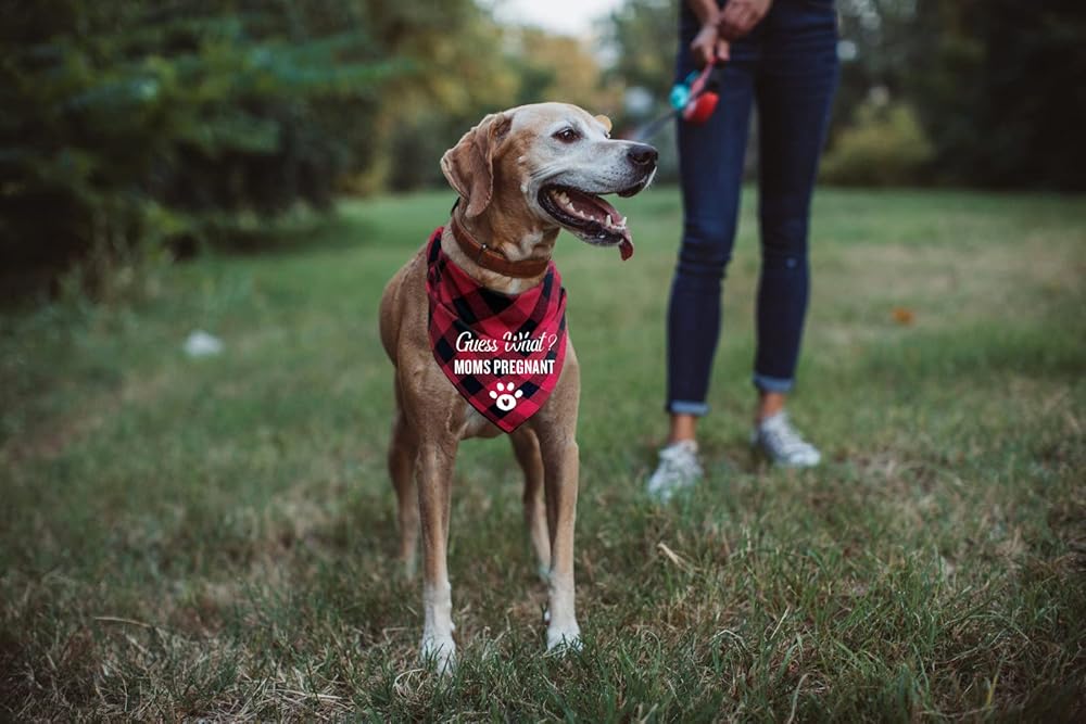 إعلان حمل كلب أليف منقوش باللون الأحمر المضحك، باندانا مثلثة، خمن ماذا؟ أمي حامل، ملحقات زينة وشاح الحيوانات الأليفة، أوشحة الحيوانات الأليفة، هدية لمحبي الكلاب، صورة تكشف عن الجنس