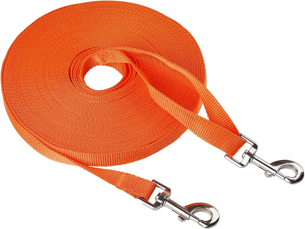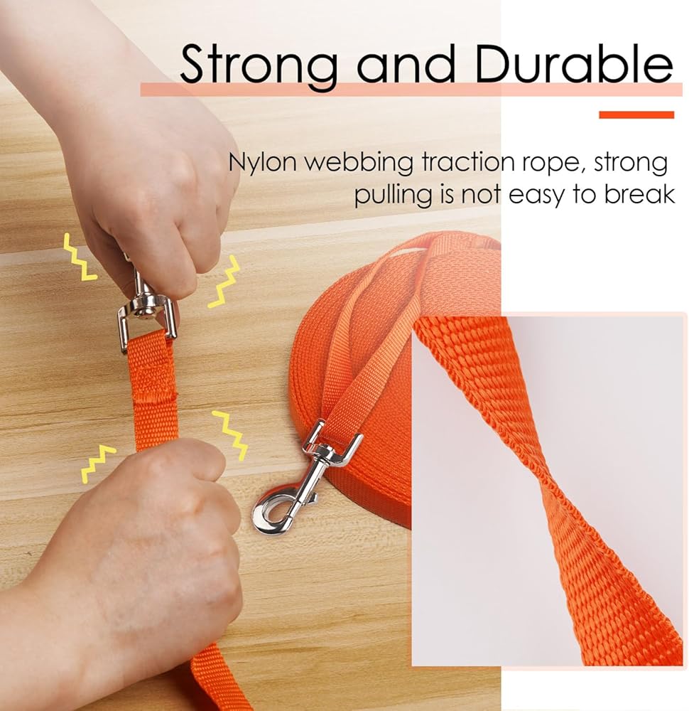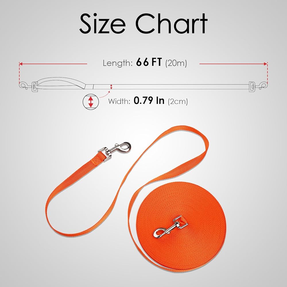 مقود ثينك بت نايلون للكلاب بمقبض، مشبكين معدنيين على شكل حرف D بطول 66 قدم، مقود خفيف الوزن طويل للغاية للكلاب والقطط الصغيرة والمتوسطة الحجم، برتقالي