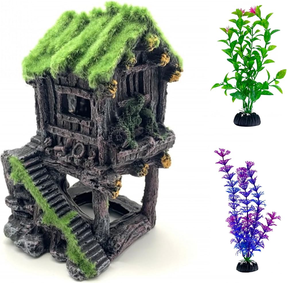 معبأة: تتضمن العبوة 1 × بيت أسماك البيتا و2 × 4 نباتات بلاستيكية لحوض السمك مقاس 4 بوصة (نمط عشوائي)
