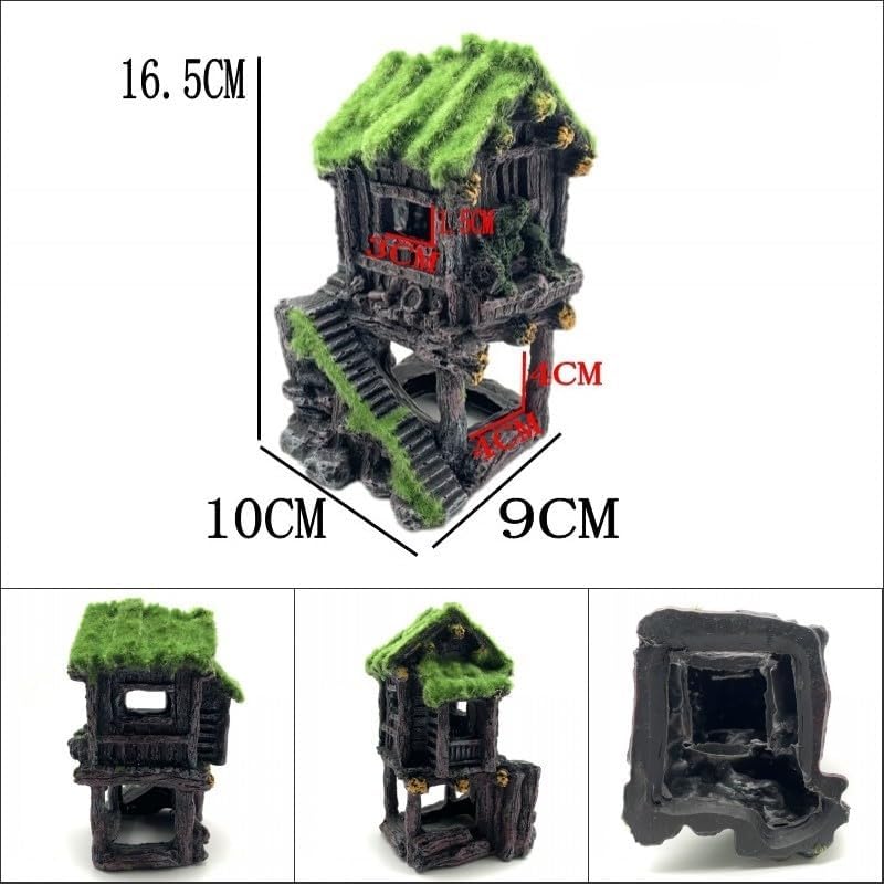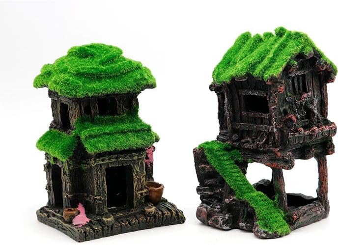 نابضة بالحياة: ديكورات حوض السمك اليابانية ذات التصميم المطحلب للكوخ المكون من طابقين نابضة بالحياة، مما يمنح خزان الوقود الخاص بك مظهرًا خاصًا ويوفر المأوى وأماكن للاختباء والترفيه لأسماكك.