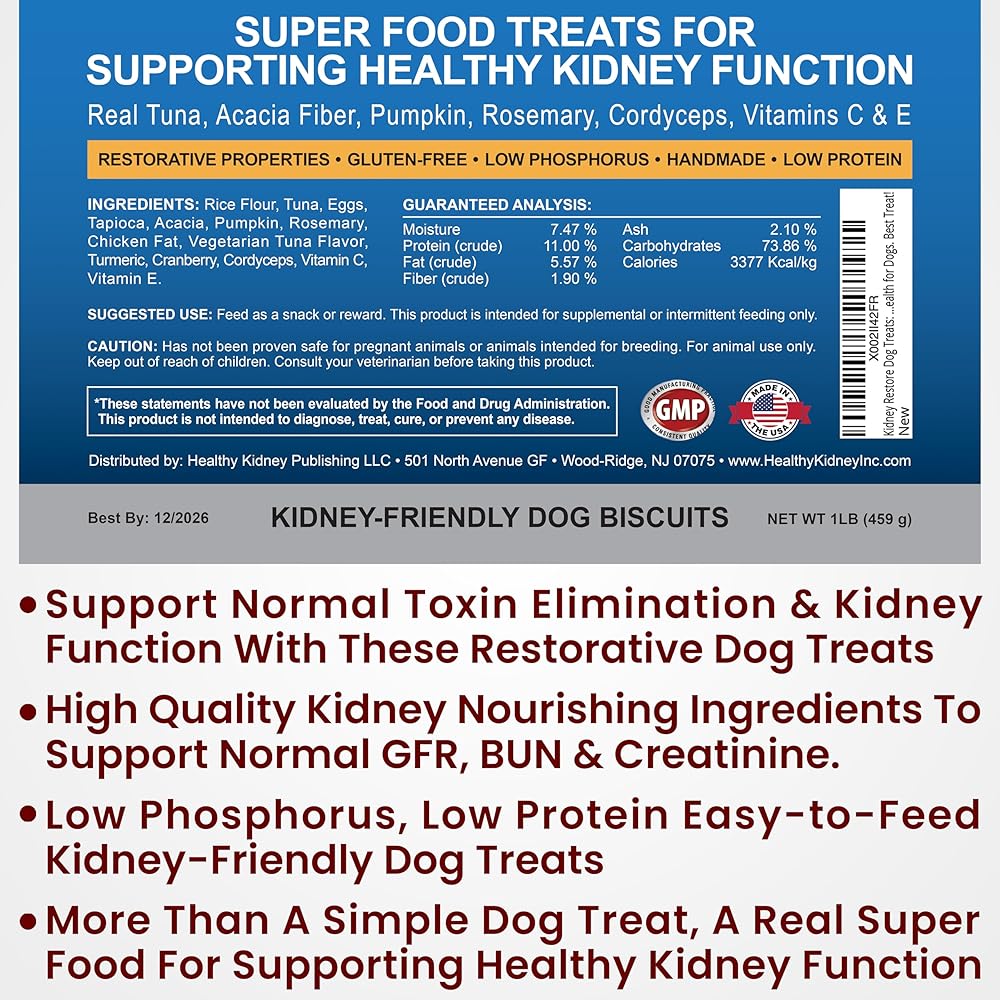 𝗔 𝗞𝗜𝗗𝗡𝗘𝗬-𝗙𝗥𝗜𝗘𝗡𝗗𝗟𝗬 𝗜𝗡𝗗𝗨𝗟𝗚𝗘𝗡𝗖𝗘 للكلاب التي تواجه مشاكل في الكلى. تعتبر علاجات الكلى للكلاب حلاً غنيًا بالمغذيات ومناسبًا لأي نظام غذائي للكلاب وأيضًا لتنشيط صحة الكلى ووظيفتها وتعزيزها. تدعم علاجات الكلاب منخفضة البروتين صحة الكلى بطرق مختلفة، حيث يلاحظ أصحابها أن الكلاب أكثر حيوية وصحة مع وظائف الكلى الطبيعية. استخدمه جنبًا إلى جنب مع نظام غذائي مخصص لكلى الكلاب، والأطعمة المناسبة، والمكملات الكلوية الأخرى، مع كونه آمنًا مع الحبوب البيطرية. قدم لكلبك أفضل علاج للكلى اليوم من أجل صحة الكلى.