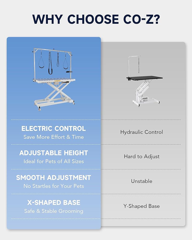 العريس للكلاب بدون ضغوط: دلّل أصدقاءك ذوي الفراء بجلسة العناية بالحيوانات الأليفة من CO-Z! مع طاولة كهربائية يمكن تعديل مقاسها بين 10.2 بوصة و40.2 بوصة، تضمن محطة العناية هذه تجنب آلام الظهر والكتف.