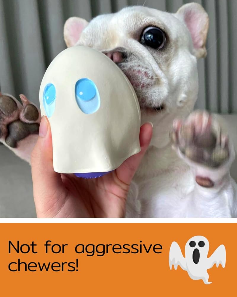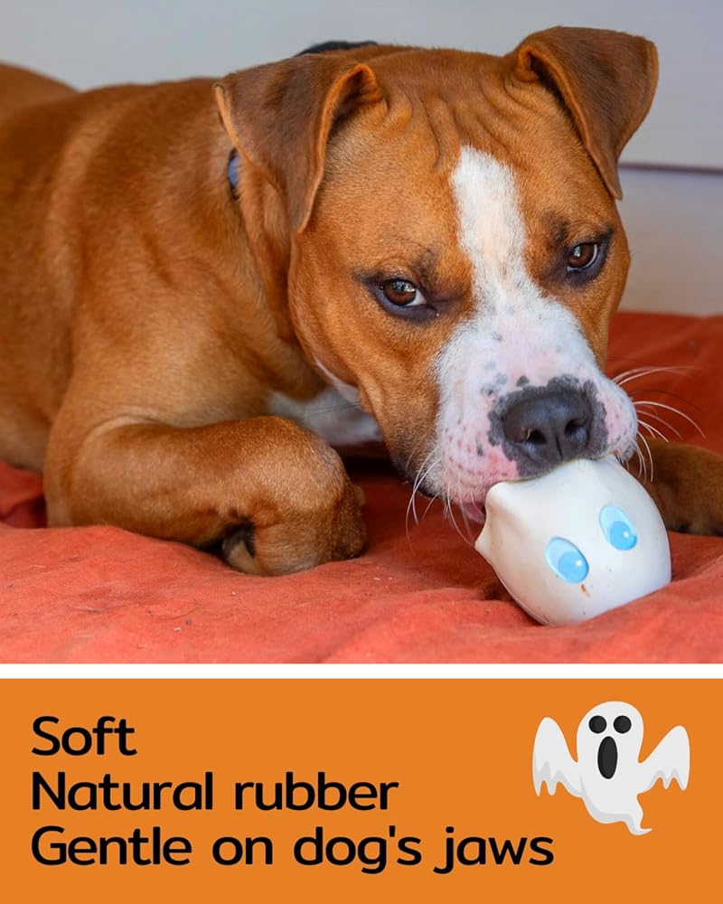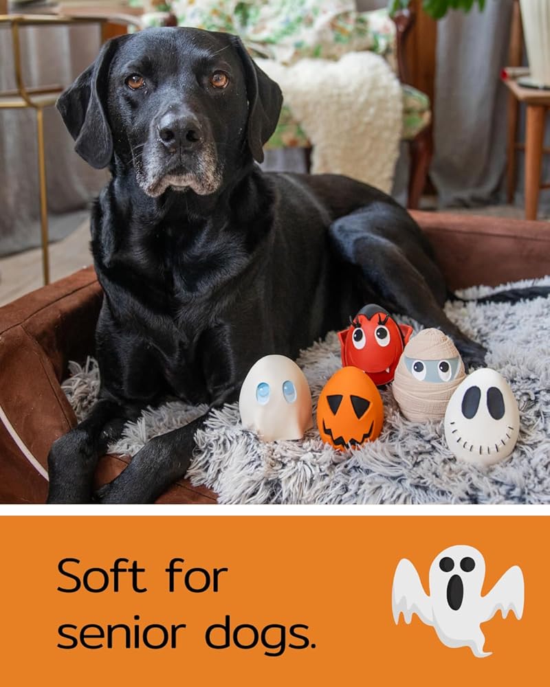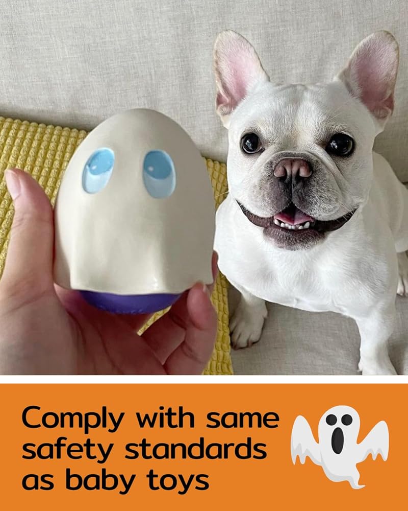 مجموعة بيض الهالوين من لانكو - ألعاب الكلاب المطاطية الناعمة التي تصدر صوت صرير - صغيرة - متوسطة - كلاب كبيرة - بطول 2.5 سم - تتوافق مع نفس معايير السلامة مثل ألعاب الأطفال (الشبح)