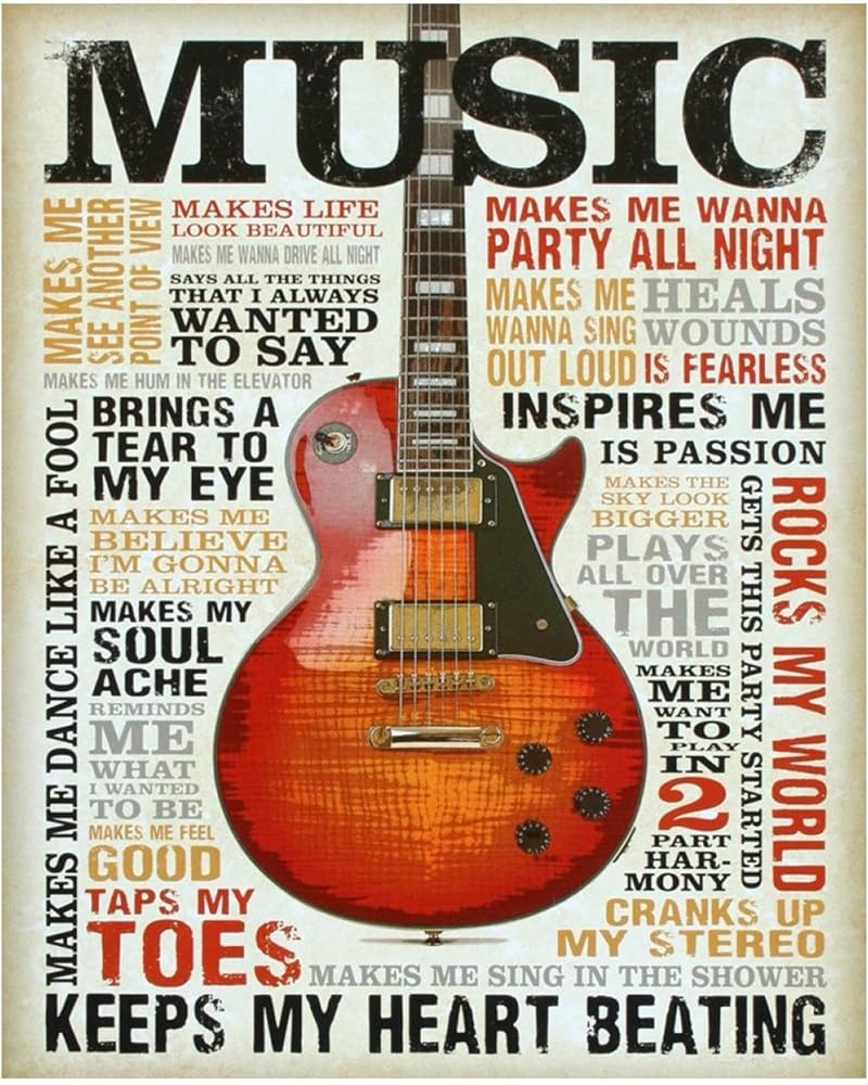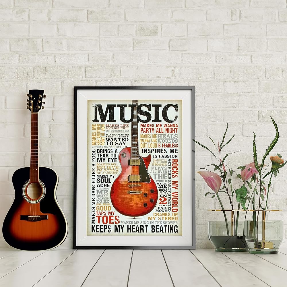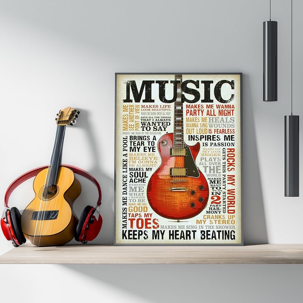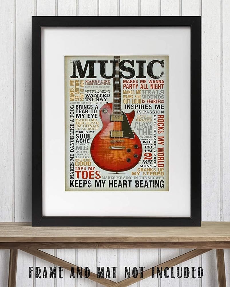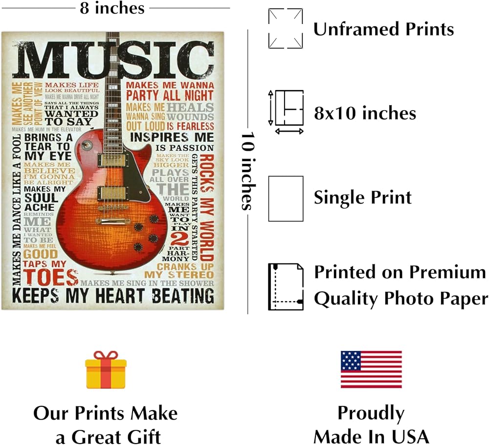 حب الموسيقى - طباعة فنية جدارية اقتباس موسيقى الجيتار، هذه الطباعة الجاهزة للإطار المطبعي المضحك للموسيقى الجدارية الفنية مناسبة للمنزل، والحانة، والاستوديو، وديكور غرفة الكهف للرجال، غير مؤطرة - 8 × 10 بوصة