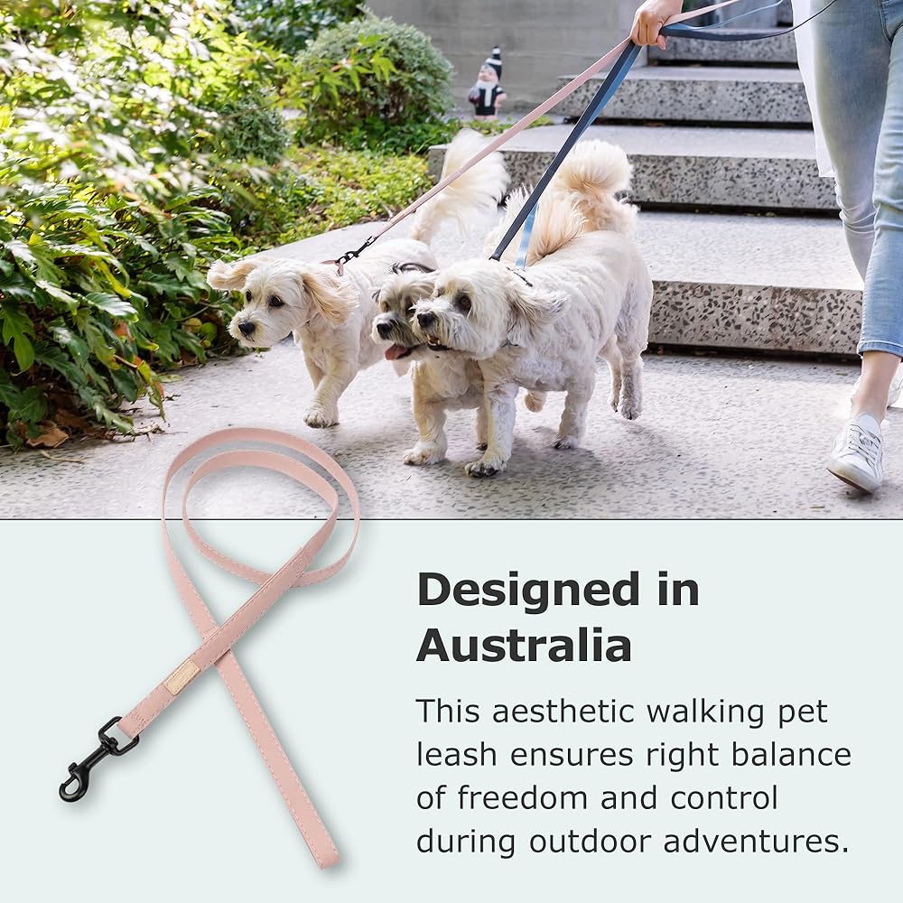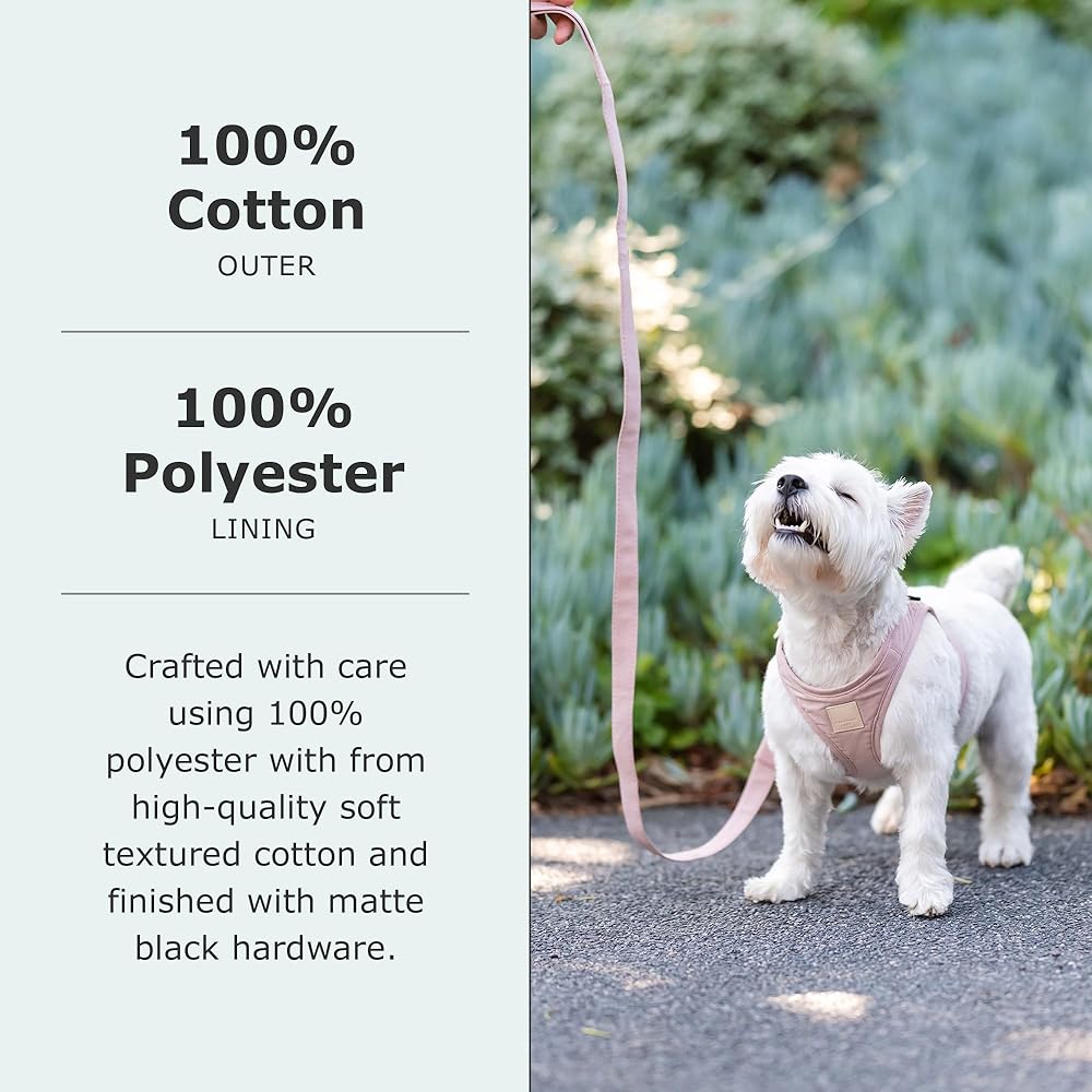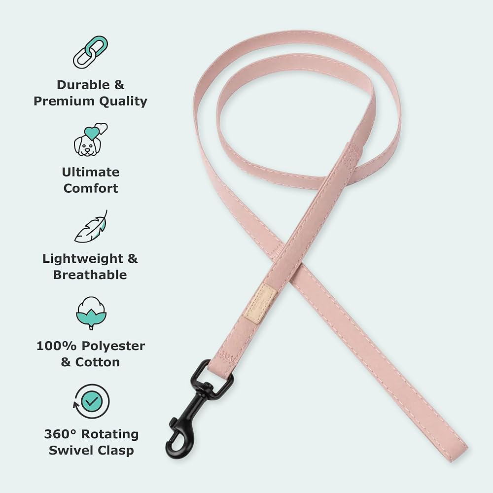 أنسجة جميلة وناعمة: مصنوع من القطن الناعم الفاخر ومزين بأجزاء صلبة سوداء غير لامعة، يتفوق مقود الحيوانات الأليفة هذا على إكسسوارات الحيوانات الأليفة التقليدية، ويوفر مزيجًا فريدًا من الجمال والراحة. كما أن المشبك الدوار بزاوية 360 درجة يجعل تجربة المشي أسهل وأكثر متعة.