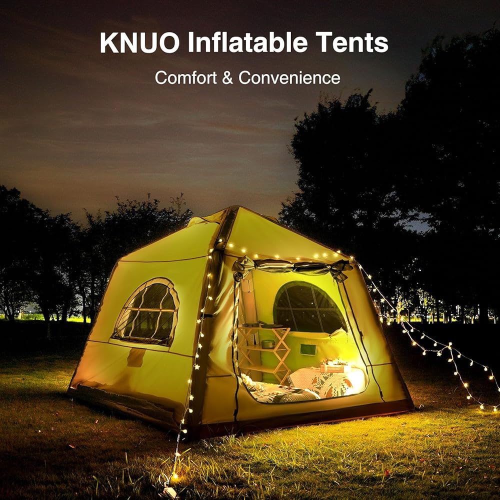 متانة معززة مع قاعدة مطلية بالبولي فينيل كلوريد: لقد أضافت خيمة KNUO القابلة للنفخ للتخييم القوة والمتانة للجزء السفلي، مما يوفر حماية إضافية ضد التآكل للاستخدام طويل الأمد.