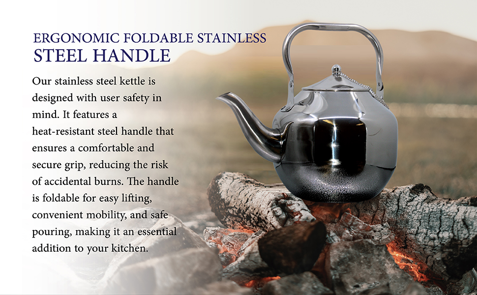 ☕ وعاء شاي تخييم عالي الجودة: تم تصميم غلاية الماء المغلي للتخييم من TtAk HOUSEWARE بعناية مع وضع راحة المستخدم في الاعتبار، ويوفر المقبض قبضة آمنة وثابتة. وهذا يثبت أنه لا يقدر بثمن عندما يتعلق الأمر بسكب غلاية الشاي وتحريكها. لا يعزز التصميم المريح تجربة المستخدم فحسب، بل يساهم أيضًا في السلامة العامة عند التعامل مع السوائل الساخنة.