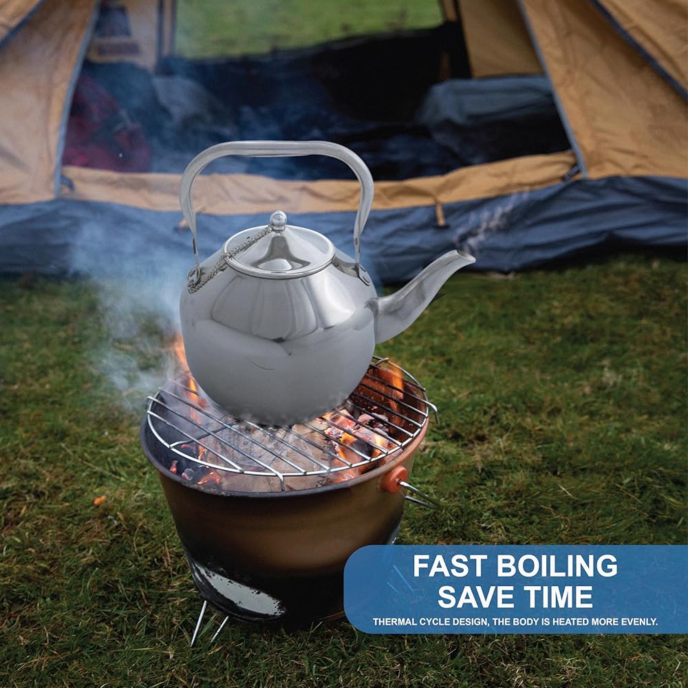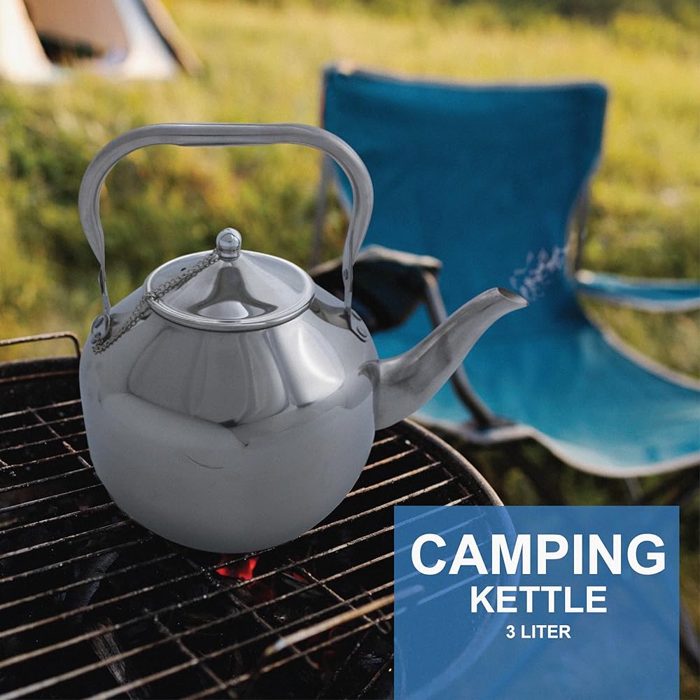 ☕ غلاية شاي من الفولاذ المقاوم للصدأ بسعة 3 لتر: غلاية شاي التخييم الخاصة بنا مصنوعة من الفولاذ المقاوم للصدأ المتين عالي الجودة، غلاية شاي التخييم TtAk HOUSEWARE بسعة 3 لتر تضمن المتانة وطول العمر، مما يجعلها رفيقًا موثوقًا لجميع المغامرات الخارجية. البناء القوي يقاوم الوعرة. يمكنك استخدام غلاية الماء هذه لتحضير الشاي والاسترخاء والمساعدة في تقليل التوتر والحفاظ على الصحة العقلية. تظل سليمة أثناء التخييم والمشي لمسافات طويلة والنزهات والسفر.