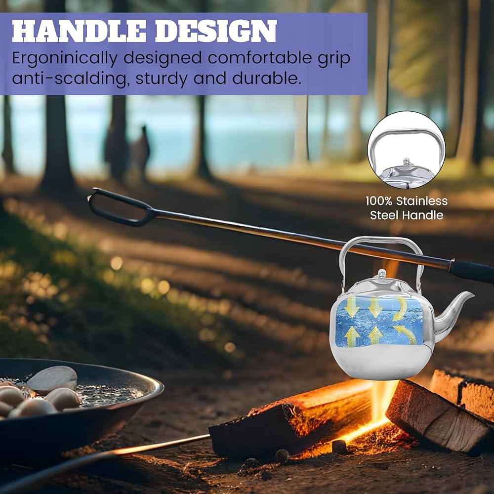 ☕ غلاية تخييم متعددة الوظائف للأنشطة الخارجية: ارفع تجربتك الخارجية مع غلايتنا المحمولة. سواء كنت في رحلة تخييم، أو تنزه عبر المسارات ذات المناظر الخلابة، أو تستمتع بنزهة مع أحبائك، أو تستكشف وجهات جديدة، فإن مقبض غلاية الشاي للتخييم أثناء السفر هذا يحتوي على أخدود ثابت لمنع الغلاية من الإمالة عند التعليق. يضيف لمسة من الراحة والدفء المنزلي إلى مغامراتك الخارجية. استمتع بكوب ساخن من الشاي، حتى في البرية.