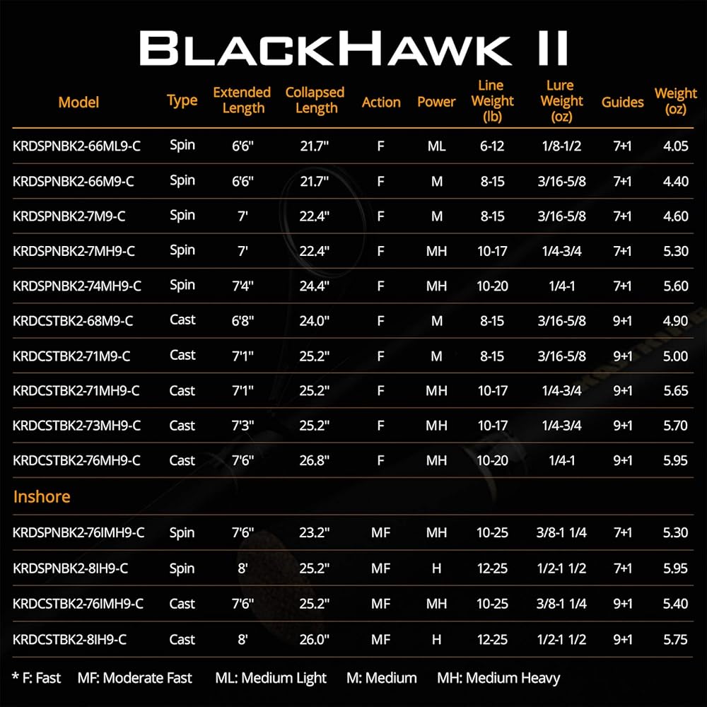 • متعددة الأغراض - يتوفر صنارة الصيد للسفر KastKing BlackHawk II بـ 14 طولًا وحركة في نماذج قضبان السفر الدوارة وقضبان الصب. ستجد صنارة الصيد الدوارة المثالية أو صنارة صيد الطعم لأي حالة صيد في المياه العذبة أو المالحة تقريبًا سواء كانت صيد سمك السلمون المرقط أو صيد الباس أو صيد قوارب الكاياك أو حتى كقضيب صيد على الشاطئ لصيد المياه المالحة من البنك أو القارب. تتميز قضبان السفر KastKing بتصميم مذهل وتوازن مثالي.