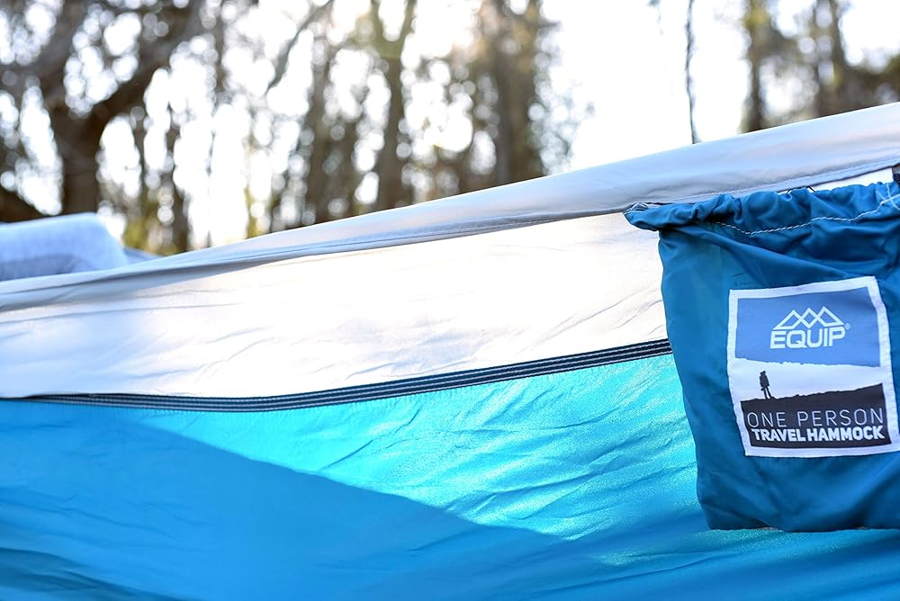 This Equip Two Person Travel Hammock has plenty of room for two, or keep it all to yourself and relax in ultimate comfort. It has a small pack size and will fit easily in the integrated carry bag for easy portability. With a weight capacity of 500 lbs, you can feel safe and secure. The small pack size makes it easy to just throw into your backpack for a hiking trip or take with you on your bike ride. This double hammock includes hammock straps and carabiners. This allows you to set up your hammock in just minutes with no need to go out and buy anything extra. The integrated loop ends add strength to the hammock and make it easier to set up. The nylon hammock fabric is water-resistant to keep you safe and dry. Equip hammocks feature bright colors and patterns to help you express your personality and style. The larger size of this hammock allows for more room for you to relax with your favorite person or furry friend. Equip yourself, Equip life!