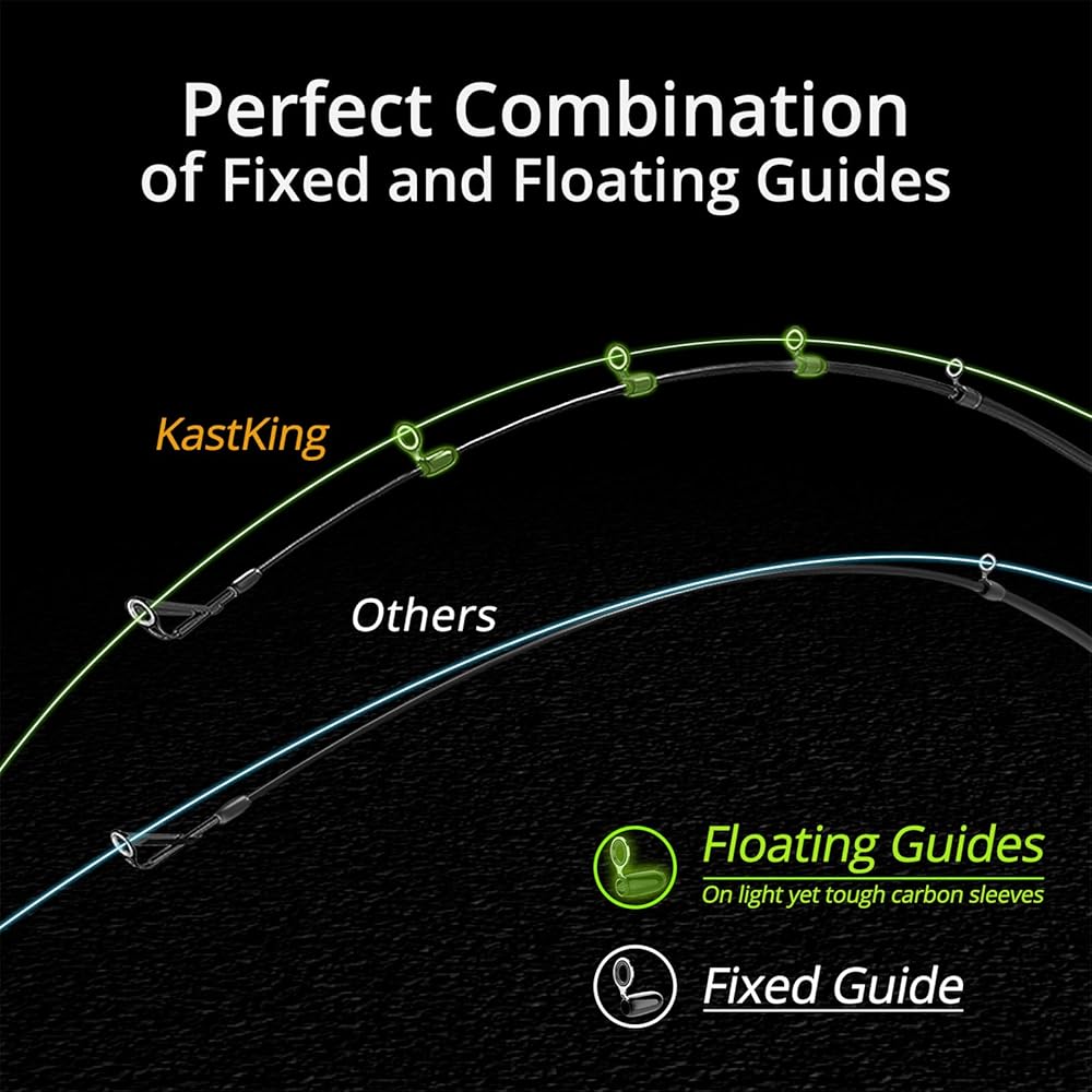 • تقنية الأداء المنفرد - KastKing KastFlex Toray 24 طن من مصفوفة الكربون الفارغة وقسم الطرف الزجاجي الصلب يوفر متانة وحساسية وأداء لا مثيل له. أداء من قطعة واحدة في تصميم قضيب تلسكوبي من ست قطع. تعمل أدلة الخطوط العائمة المتعددة على تحسين أداء الصب، وتوفر استدقاقًا متسقًا وسلسًا وتزيل البقع المسطحة أو الميتة في الفراغ. توفر الحلقات Snug-Fit انتقالًا كاملاً للطاقة وتسمح لهذه القضبان بالأداء والشعور وكأنها قضيب قطعة واحدة.