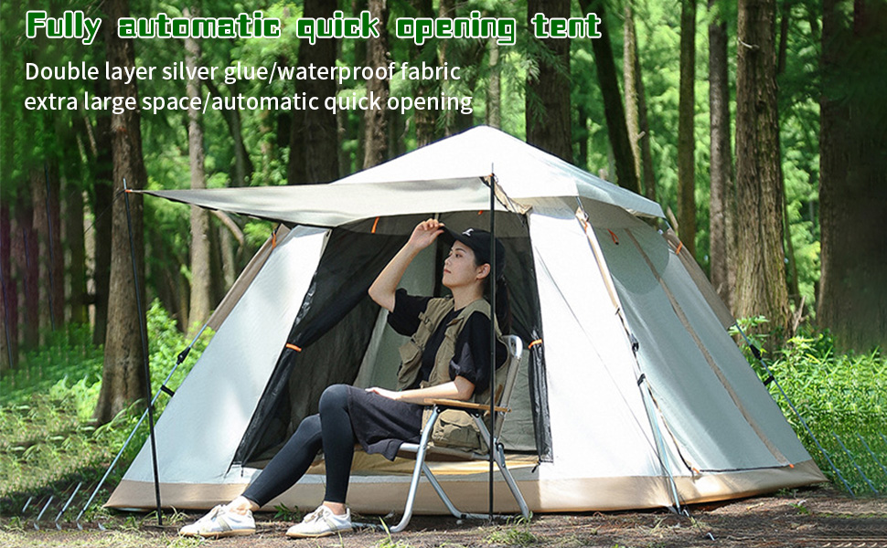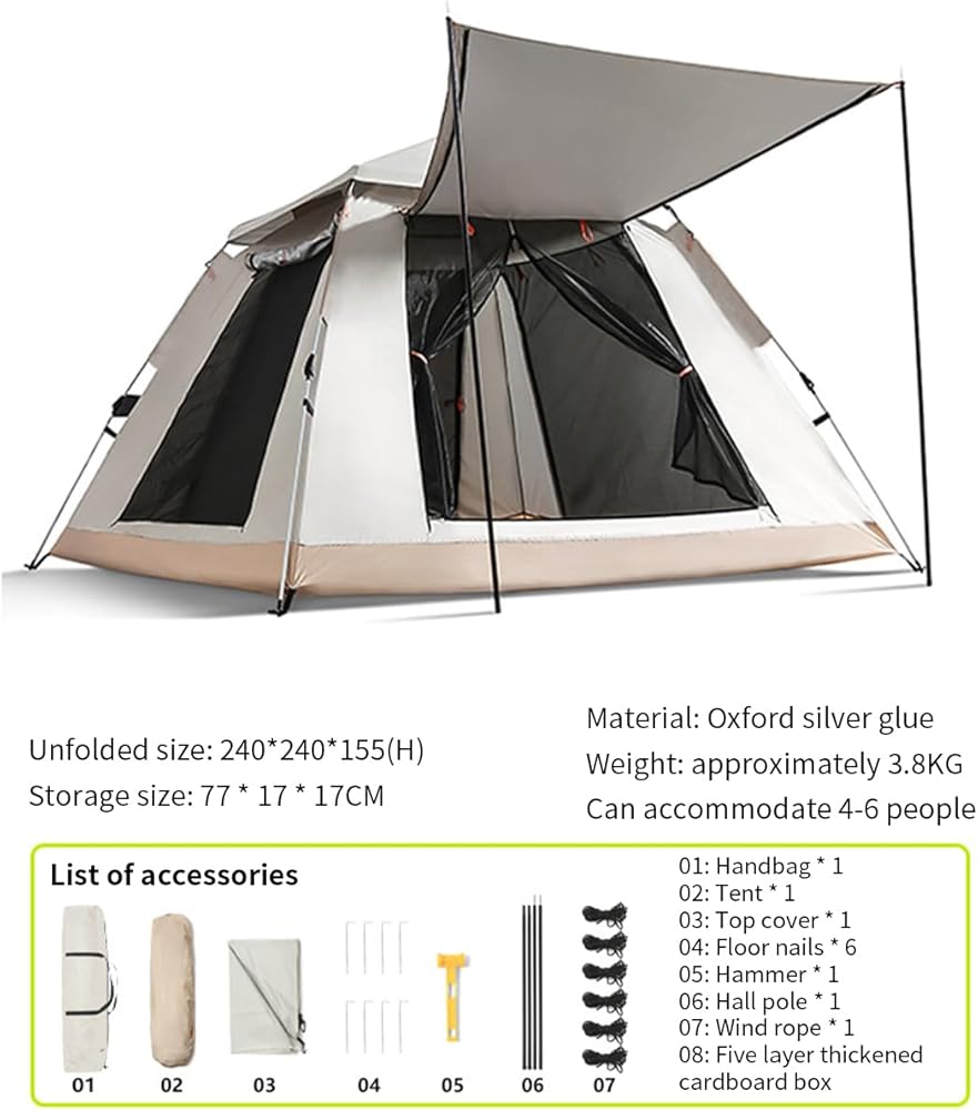 【ما تحصل عليه: 1x خيمة تخييم عائلية، 1x غطاء علوي، 1x حقيبة حمل، 6x أظافر أرضية، 6x حبال رياح، 2x ممرات. إذا واجهت مشاكل أخرى أثناء الاستخدام، فسنقدم لك حلاً مرضيًا خلال 18 ساعة.
