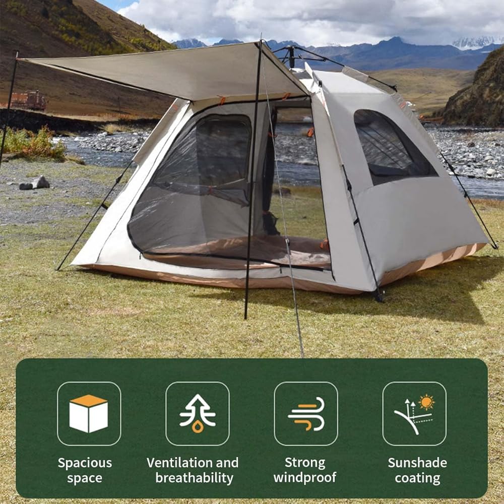 خيمة تخييم مع حقيبة حمل، خيمة خفيفة الوزن محمولة على الظهر للتخييم في الهواء الطلق/المشي لمسافات طويلة، خيمة أوتوماتيكية سهلة التركيب لخيمة المنزل، زيادة في الغراء الفضي للتخييم في الهواء الطلق (94 بوصة)