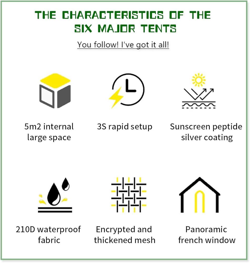 【إعداد لمدة دقيقة واحدة] يمكن تركيب الخيمة المنبثقة في غضون دقيقة واحدة، دون الحاجة إلى تعليمات معقدة، مما يجعلها مثالية للمغامرات الخارجية. يسمح لك بقضاء وقت أقل في اللعب والمزيد من الوقت للاستمتاع بمغامراتك الخارجية.