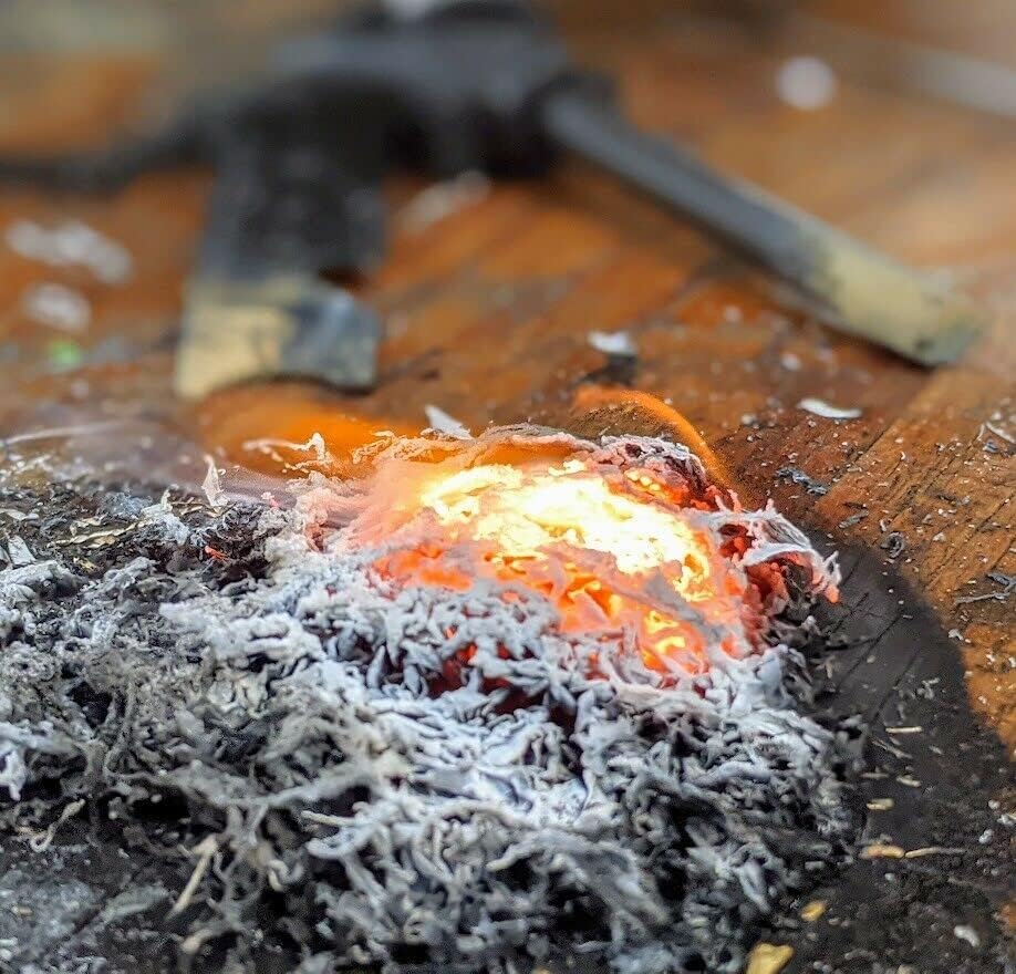 (1) كيس من المغنيسيوم 3 بوصة × 2 1/2 بوصة يشتعل بالشرر من قضيب الحديد الخاص بك، حرق ساخن، يشعل مادة رطبة. (1) كيس من غبار الخشب الدهني مقاس 6.35 سم × 7.62 سم، يشتعل باستخدام الحديد الخاص بك أو يطابق الاحتراق لفترة طويلة. تستخدم أعواد خشب الدهن في مادة الاشتعال.