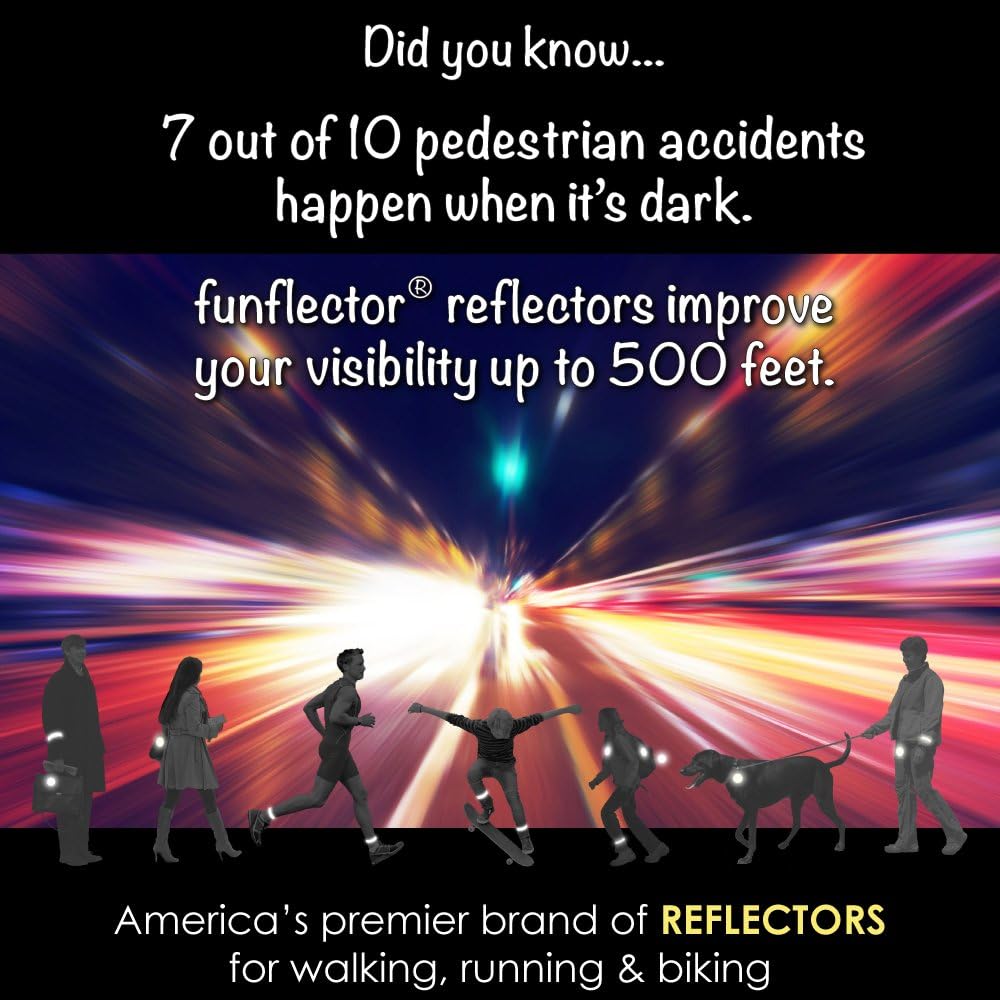 7 من أصل 10 حوادث للمشاة تحدث في الليل. عاكسات الأمان الممتازة الأنيقة والممتعة في الارتداء يجب اقتناؤها للأطفال والمراهقين والبالغين عند المشي أو الجري أو ركوب الدراجات في الليل وفي الصباح الباكر.