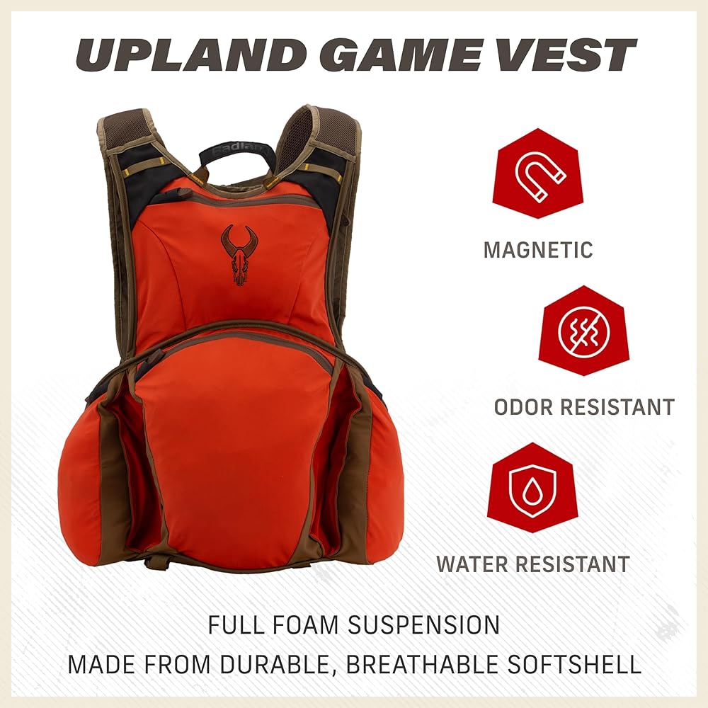 QUIET, LIGHTWEIGHT- Upland hunting vest is versatile in the field with quick access storage and magnetic closures for undetectable silence